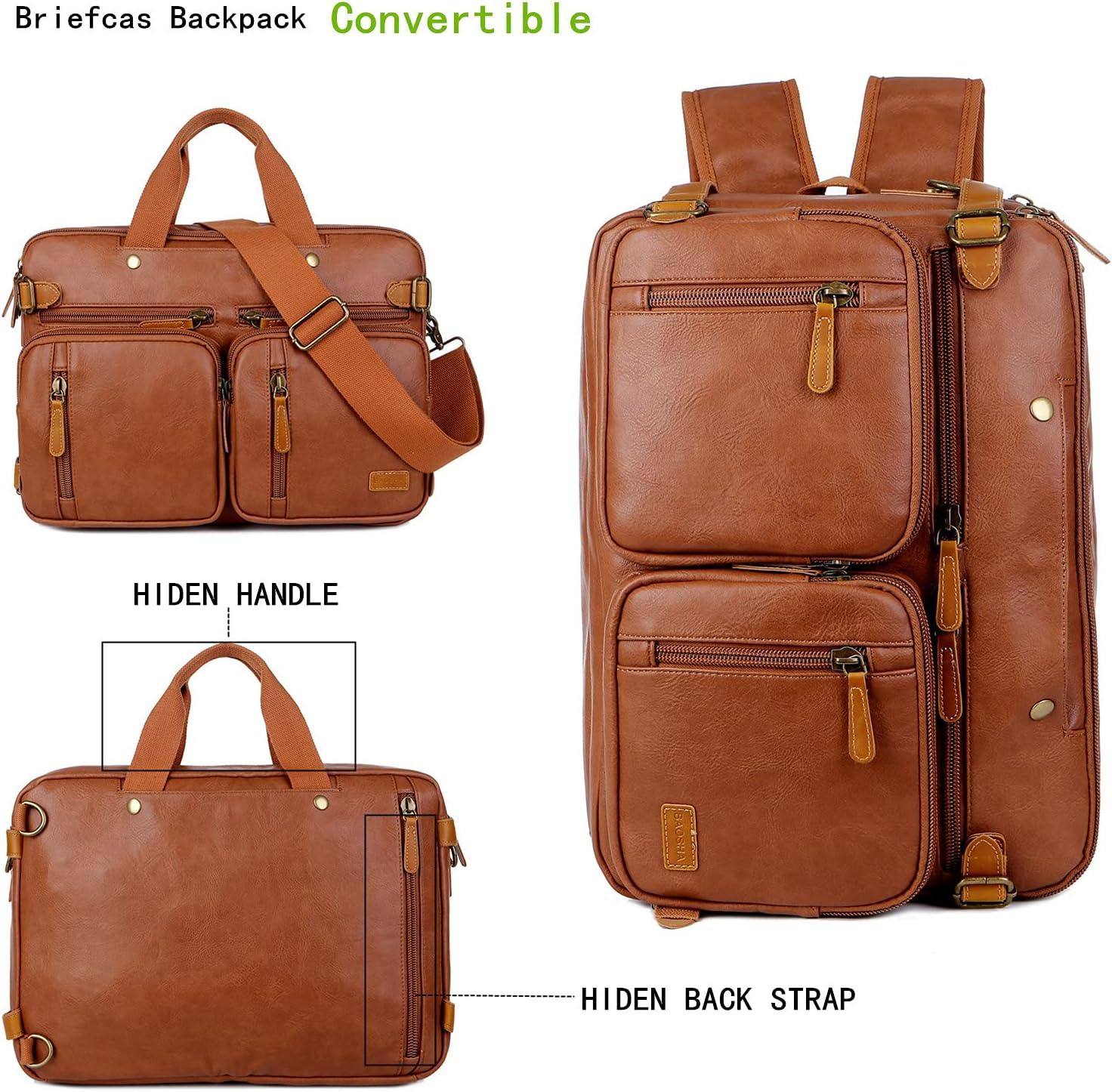 3-in-1 Vegan Leather Briefcase Backpack Hybrid – Convertible 17″ Laptop Bag (Red Lining)
