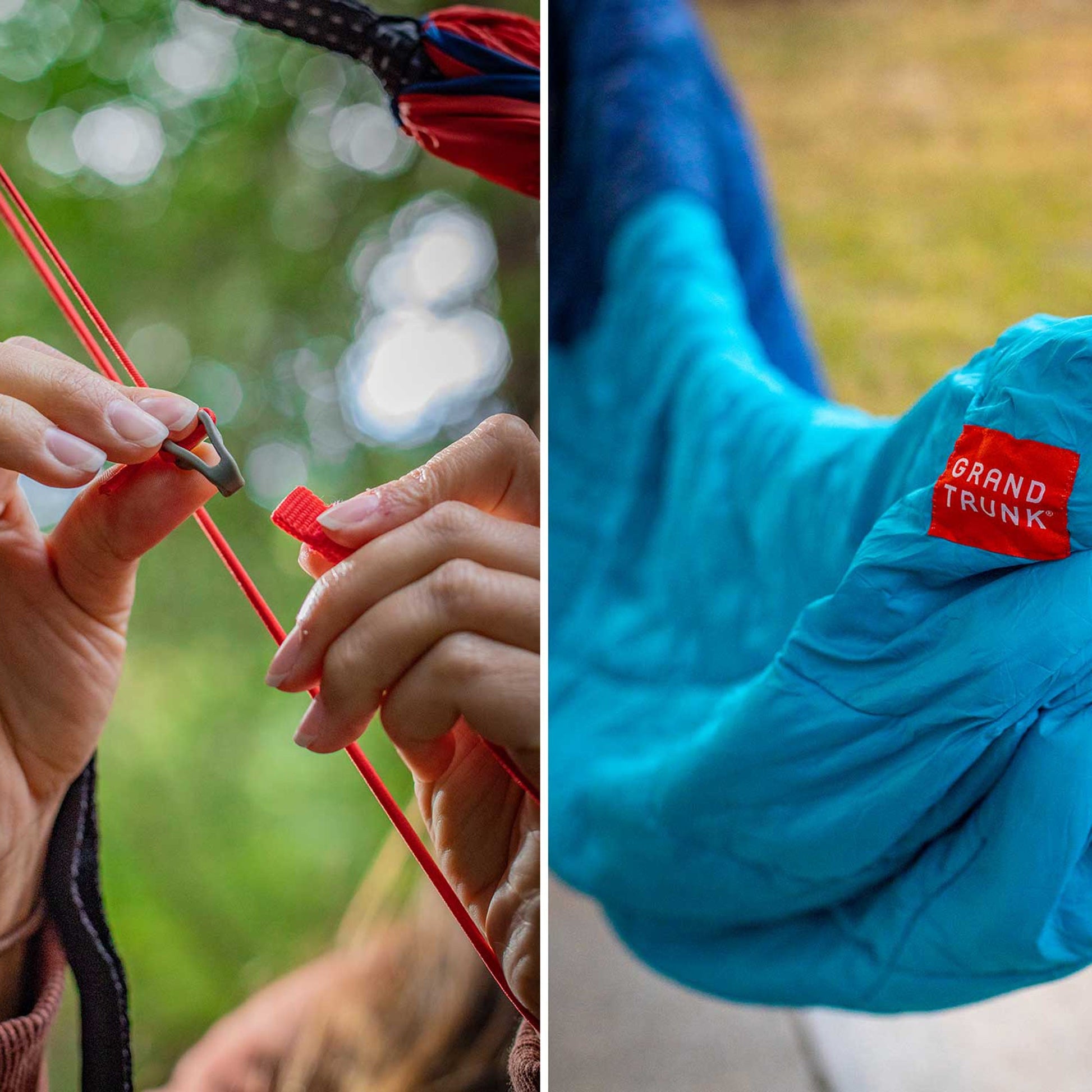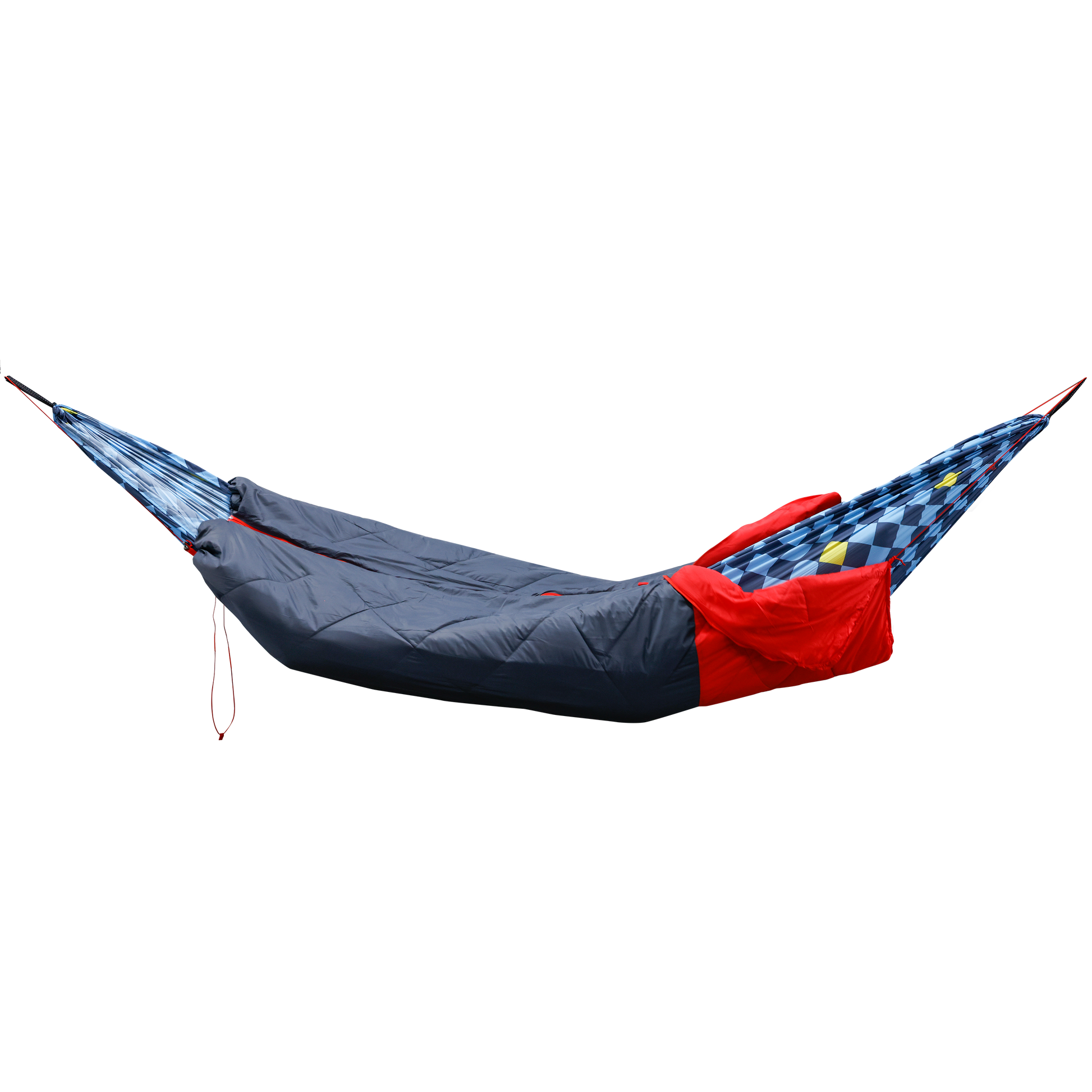 Don’t let cool weather keep you inside when you can turn your hammock into a warm, cozy cocoon with our versatile hammock underquilt and overquilt. The Grand Trunk 360° ThermaQuilt completely wraps around any hammock and cinches at the ends to keep the warm air in and cold air out. Or lay it flat to use as a tech blanket or traditional sleeping bag. Our underquilt works with almost any camping, outdoor or backyard hammock. Zip into warmth and stretch out underneath the stars; you’ll be well-rested for the new day’s journey! The Thermaquilt is a summer rated sleeping bag for cool summer nights.