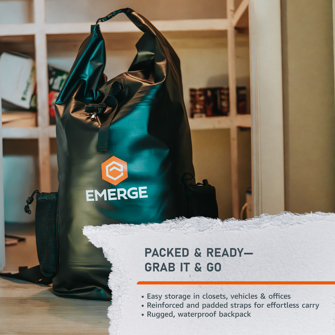 3 days. 1 bag. Everything you need. The Emerge Survival 72-Hour Kit is stocked and ready for disasters that can strike at any moment. Available in 1 or 2-person options.