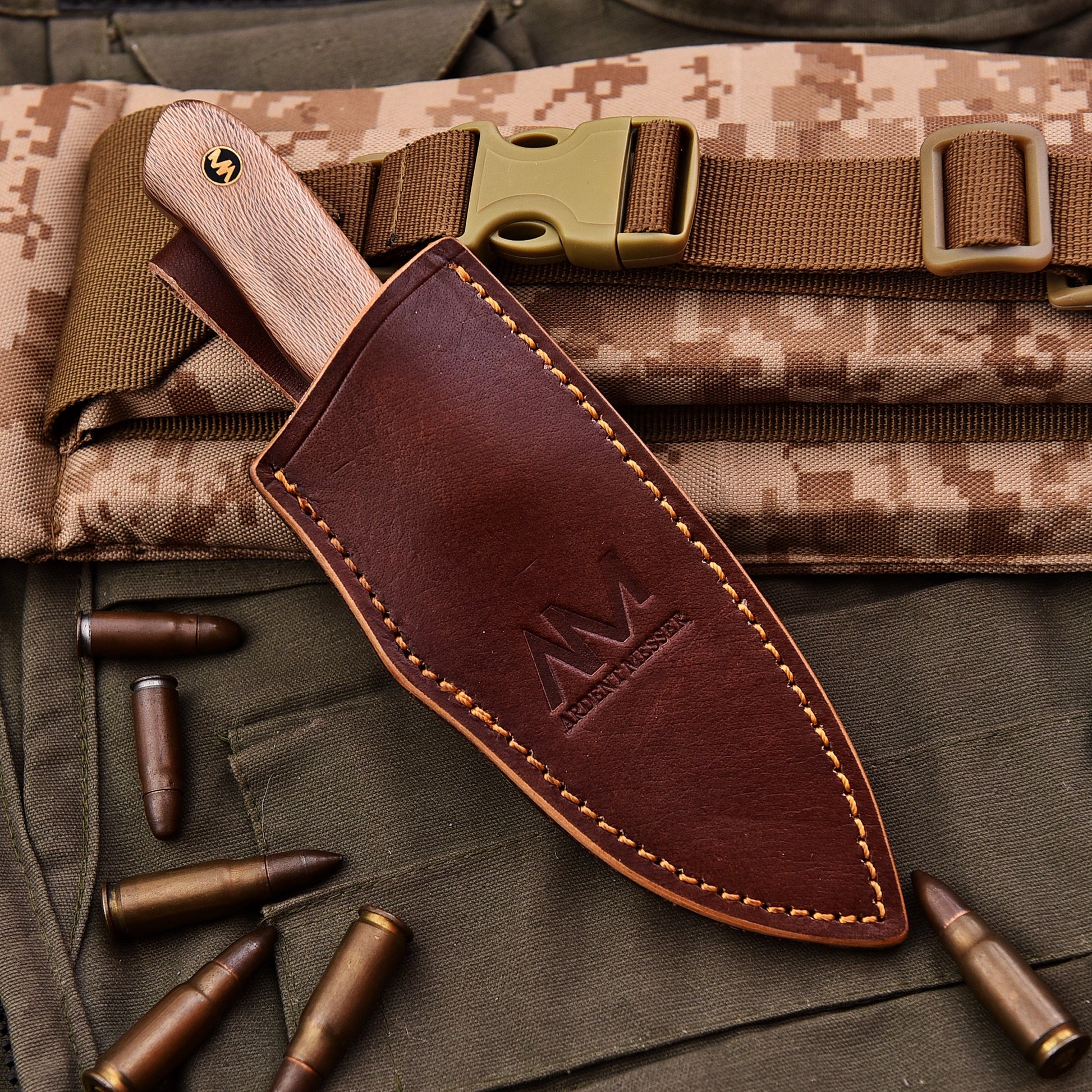 - Custom Leather Sheath: Comes with a hand-stitched leather sheath that ensures safe storage and easy vertical carry, blending protection with easy accessibility.