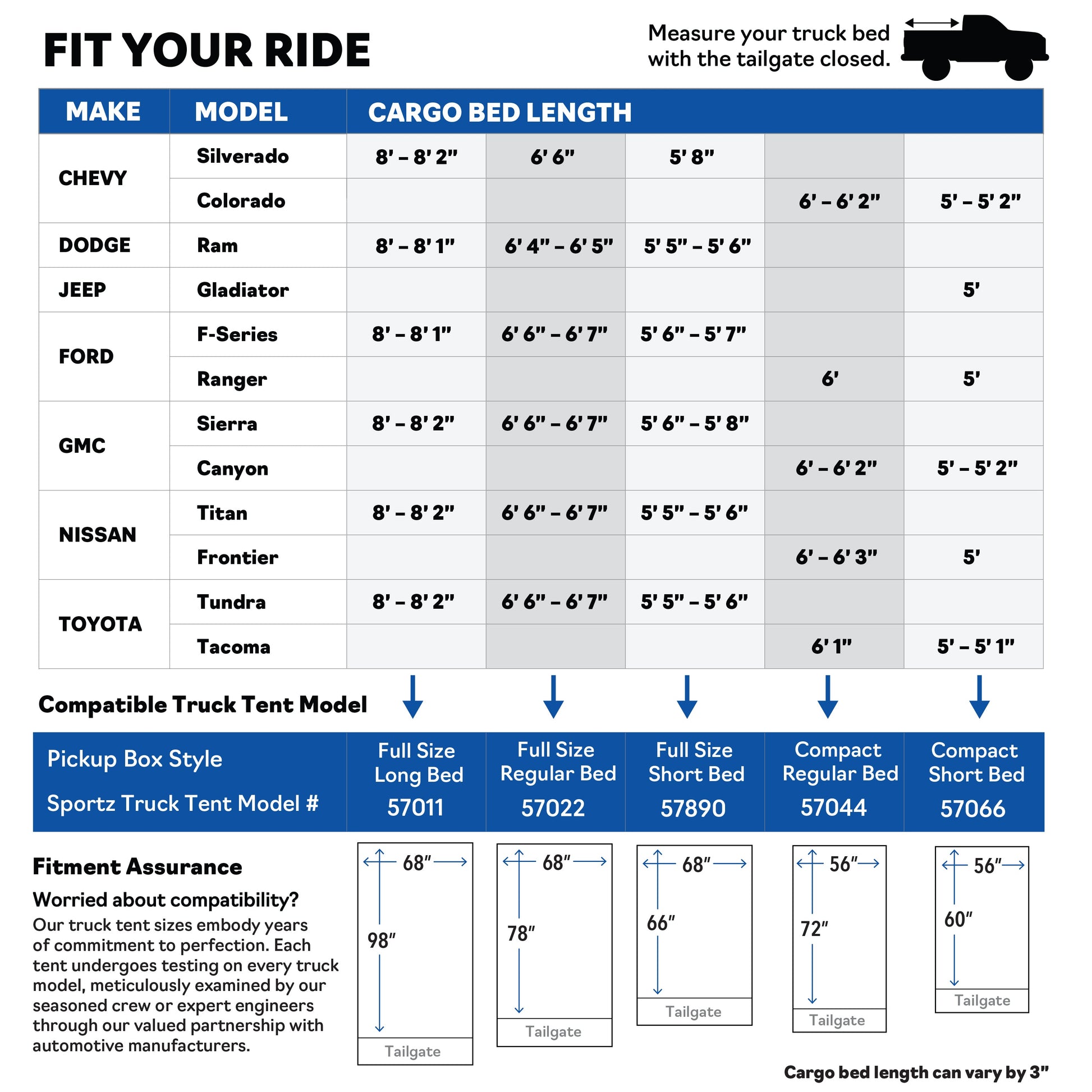 Enjoy the freedom of the open road knowing you can set-up camp anywhere your truck will take you. The Sportz Truck Tent allows you to set-up camp in the back of your pickup truck in under 15 minutes, creating a convenient and cozy sleeping area for two.