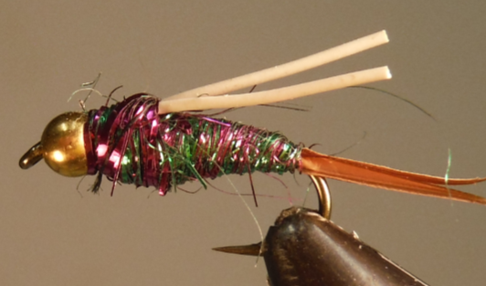 The Rainbow Prince is a wild variation of the Prince Nymph! Tied with ice blue dubbing, they are great attractor patterns. Particularly effective when fished as a dropper from a larger Grasshopper or Stonefly. Try it in high water conditions!