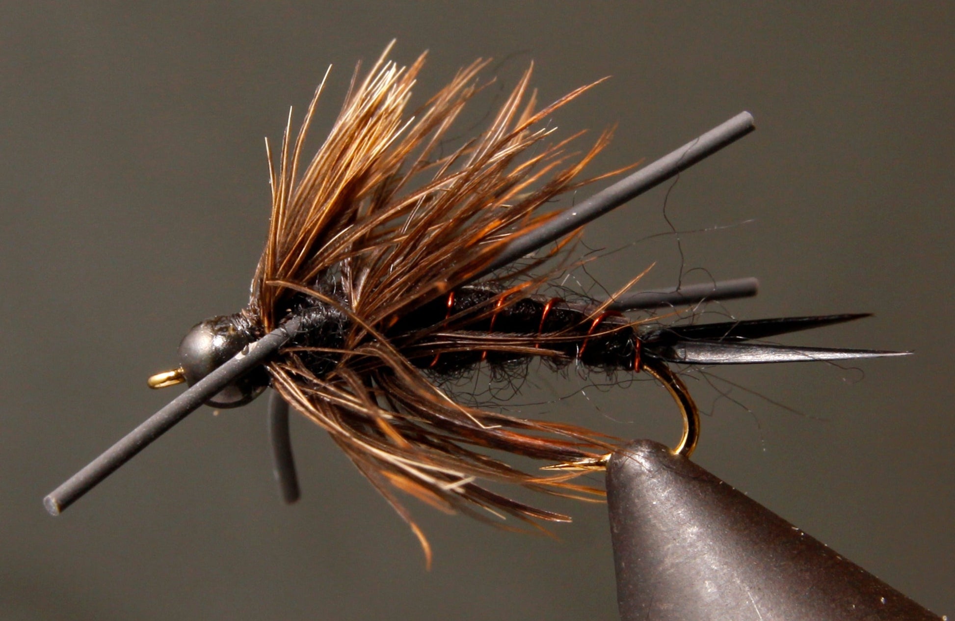 The Rock Creek Stone is a bead head black stone with lots of hackle and rubber legs for lots of movement.