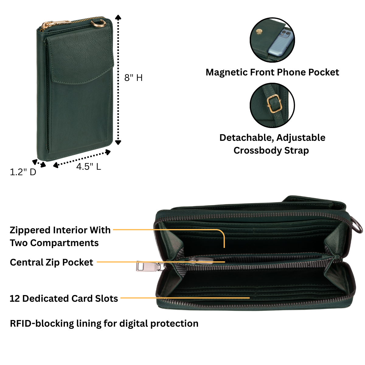 More than just a wallet, Billie is a versatile crossbody companion. With its secure zip-around design, magnetic phone pocket, and adjustable strap, it keeps your essentials—cards, cash, coins, and phone—organized and close at hand, all while elevating your style.