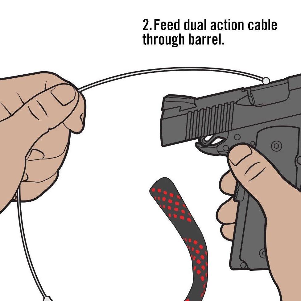 World’s Easiest Bore Cleaner. The single piece Dual Action Cable with integrated phosphor bronze brush and braided mop wraps around the unique Flex-Case Handle to keep the system stowed and organized. To use, simply flip, feed, clip, and pull. Throw it in your pack, or put it in your pocket. It’s the next best thing to a self-cleaning gun.