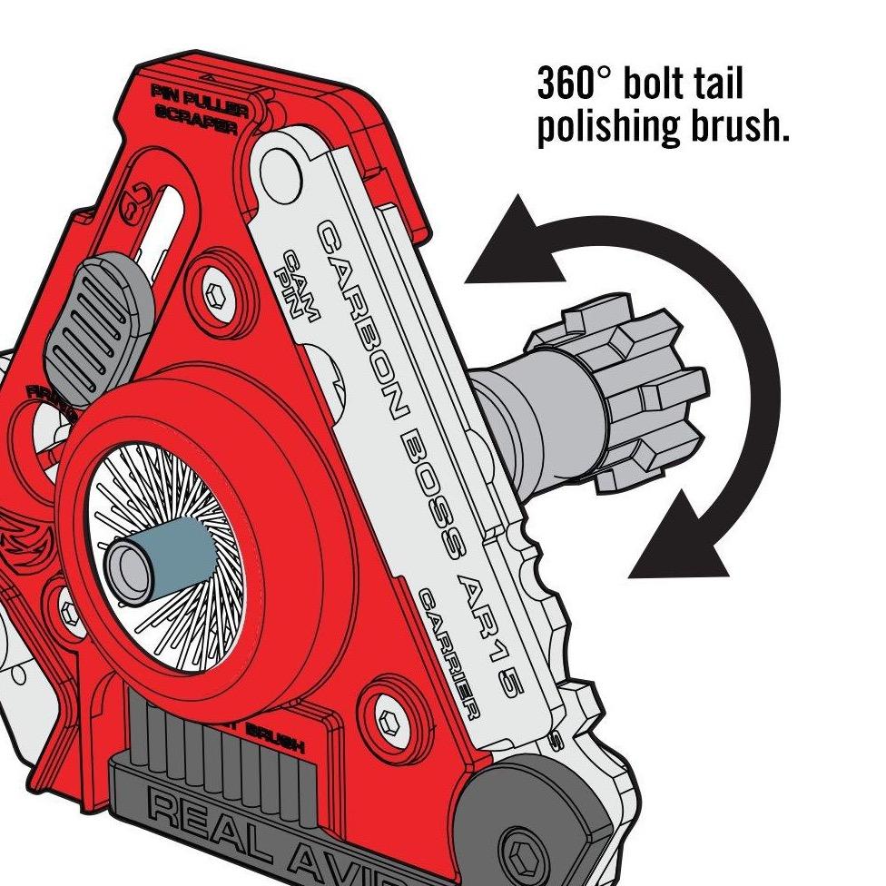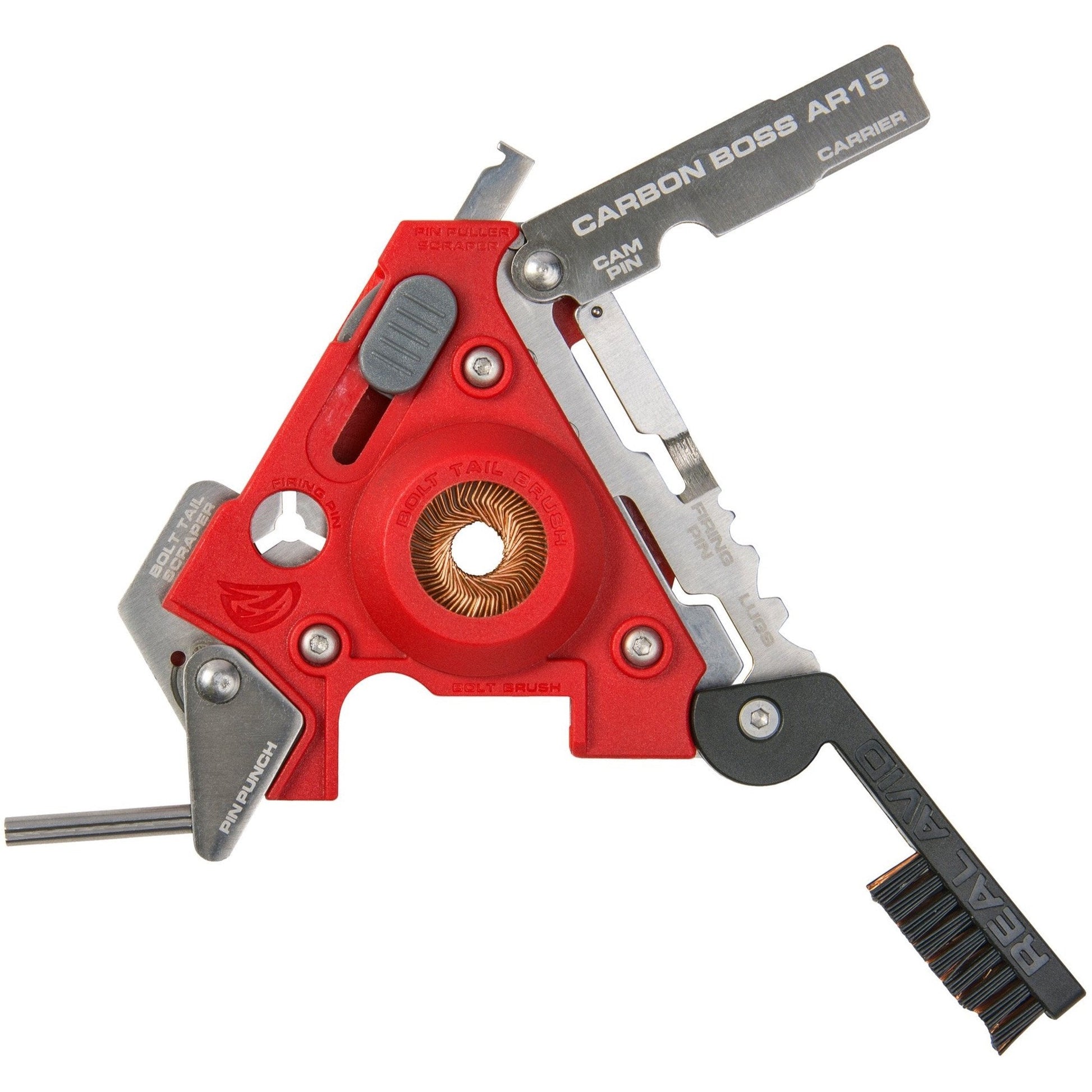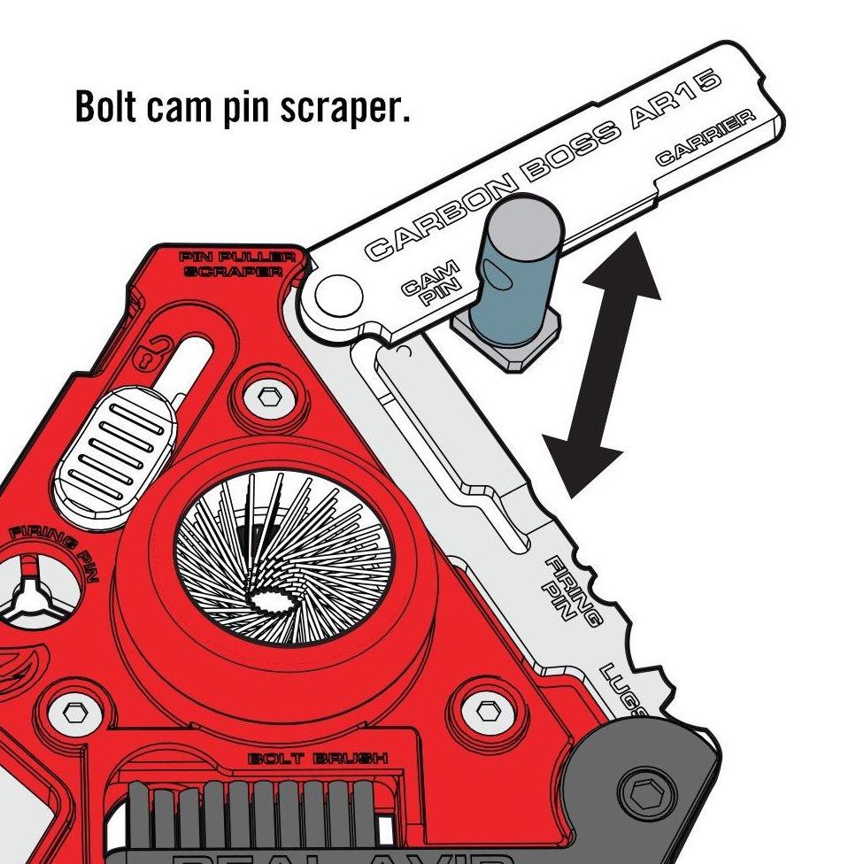 Scrapes & Cleans All 4 Major Parts Of The Bolt Carrier Group. Made by AR15 owners, this tool was designed to provide you with the most comprehensive carbon removal capabilities ever. With a rotating pin punch, cotter pin puller, interior bolt and exterior bolt scrapers, bolt lug scraper, bolt cam pin scraper, small and large firing pin scrapers, embedded 360 degree phosphor bronze bolt tail brush, replaceable rotating multi-surface bolt brush, bolt face scraper, bolt carrier scraper, and firing pin face scraper, this tool is carbon’s worst enemy. Each of the fold out tools lock into place with liner locks or detents. With labeled tools, the Carbon Boss helps you to get the job done quickly and get it done right. This eye catching, quality, and remarkably effective tool trail blazes the road to the new world of modern gun maintenance.