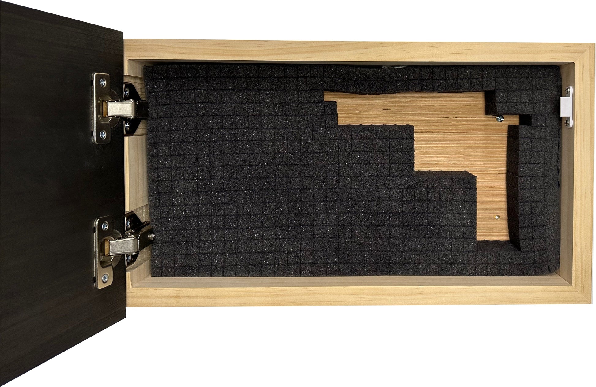 Securely store your gun and other home self defense gear inside the Bellewood Designs Carved American Flag Decorative Wall-Mounted Secure Gun Cabinet. The American Flag is carved into solid wood and then hand-finished. This decorative Carved American Flag gun cabinet will be a beautiful addition to your homes decor, make a bold statement about your position on patriotism and know one will know what's inside! Your firearm and other tactical gear is easily accessible yet securely stored, so you'll never have to worry about leaving it unattended.