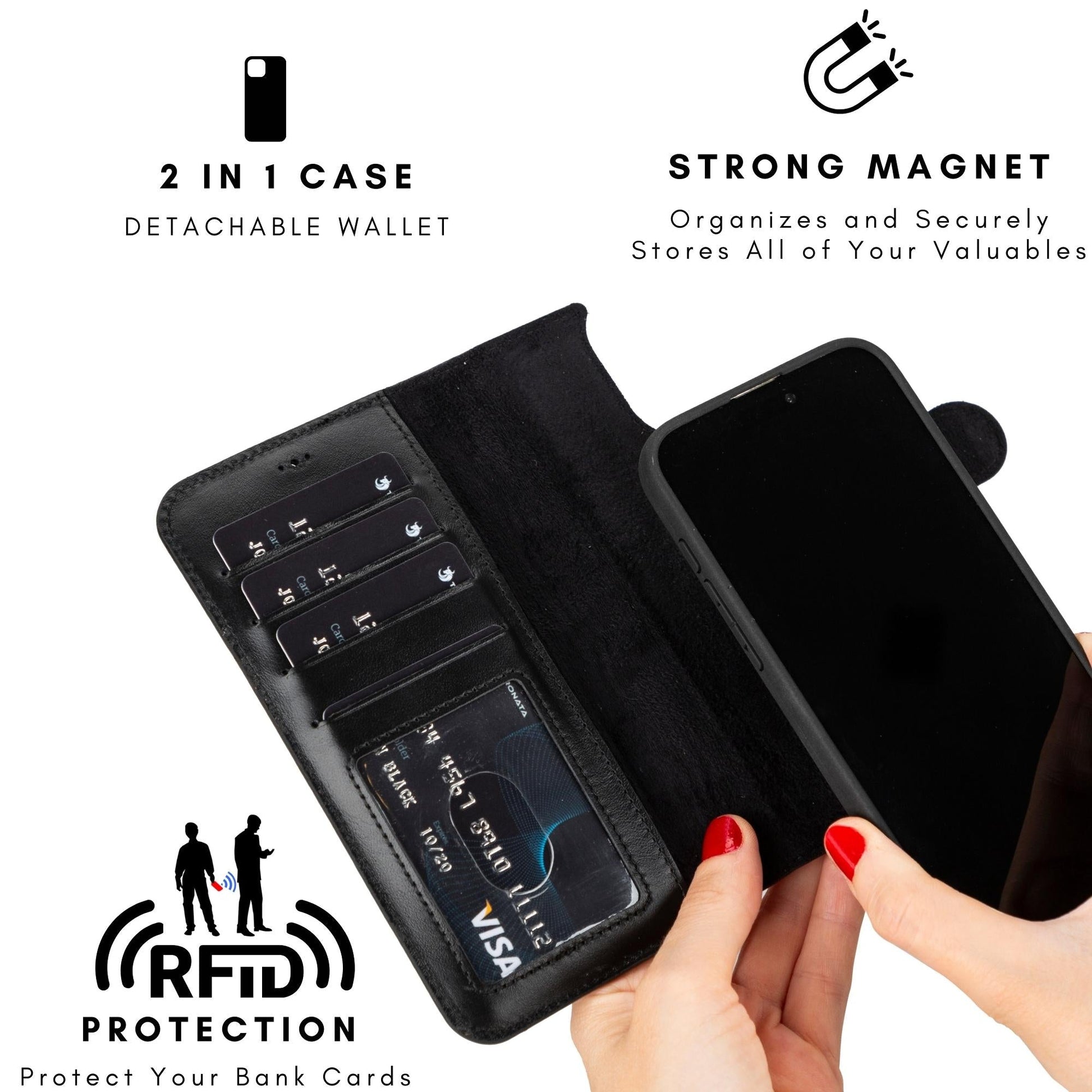 - Strong magnets keep your phone secure
