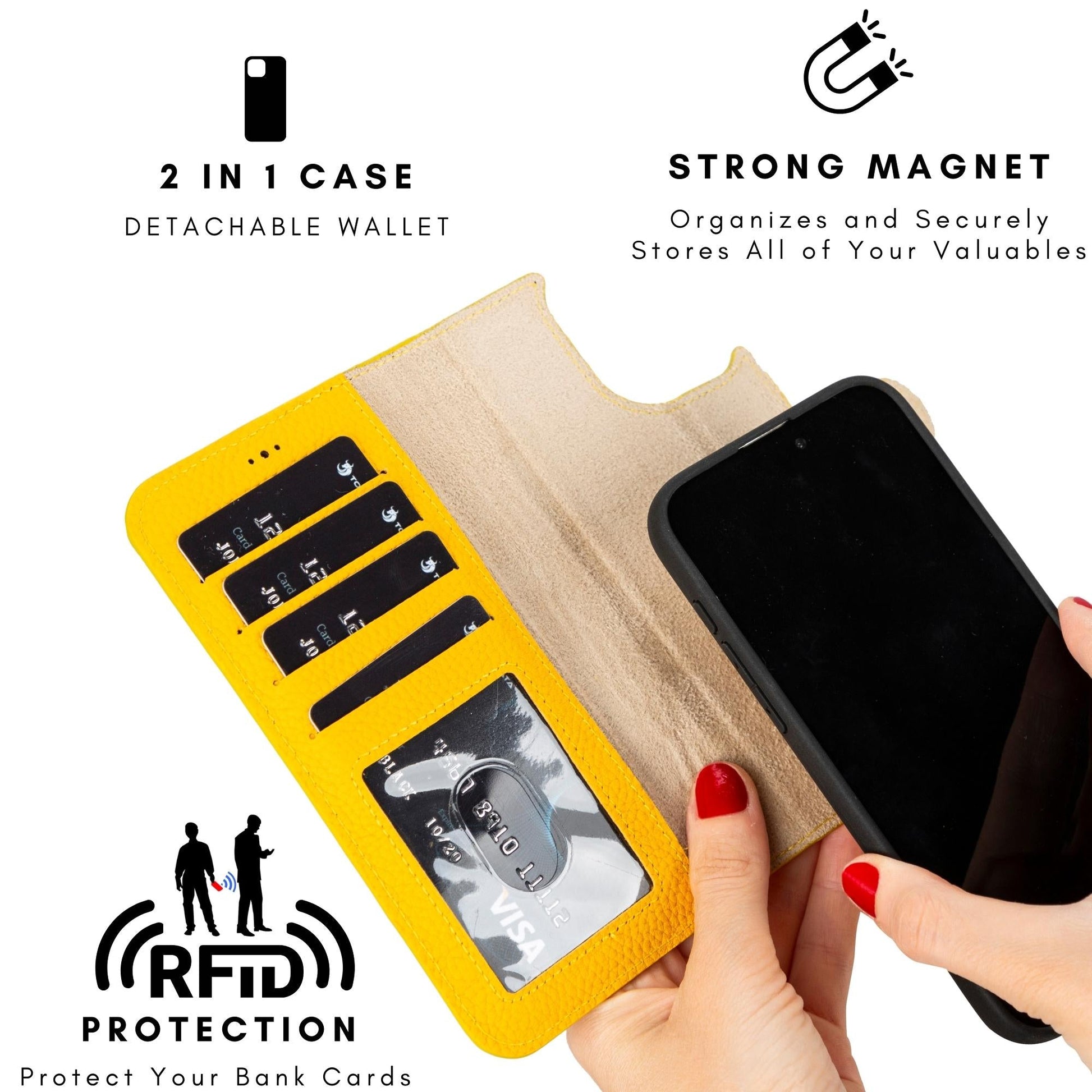The TORONATA iPhone leather wallets have a variety of slots and pockets to help you keep track of your cash, cards, and other necessities. The wallets are made to last thanks to their meticulous stitching and attention to detail, making them a trustworthy companion for your iPhone.