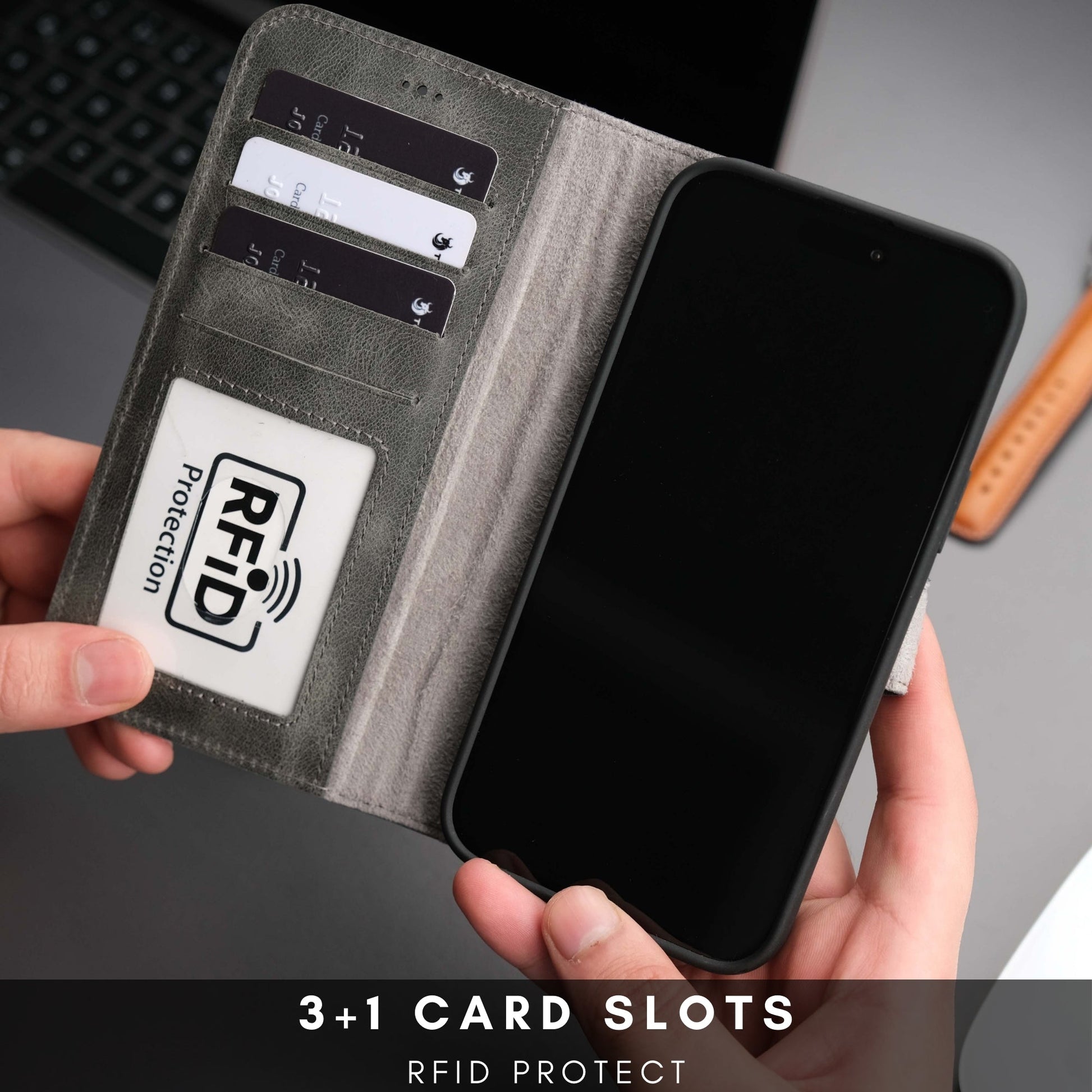 Experience the full convenience of Apple's MagSafe technology with our intelligently designed detachable magnetic back cover. Seamlessly switch between full wallet functionality and slim protection while maintaining compatibility with all your MagSafe accessories.