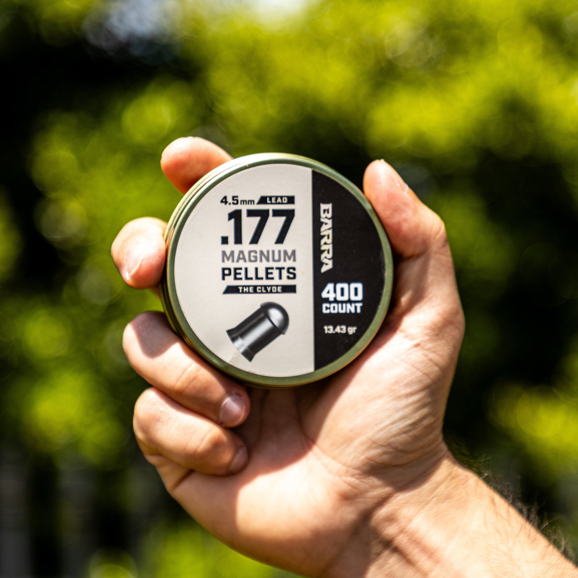The Clyde Heavy .177 cal / 4.5mm pellets are the preferred pellets for shooters seeking maximum power. With a 13.43 grain weight and a count of 400 pellets per tin, these precision-engineered projectiles deliver unrivaled power and accuracy.