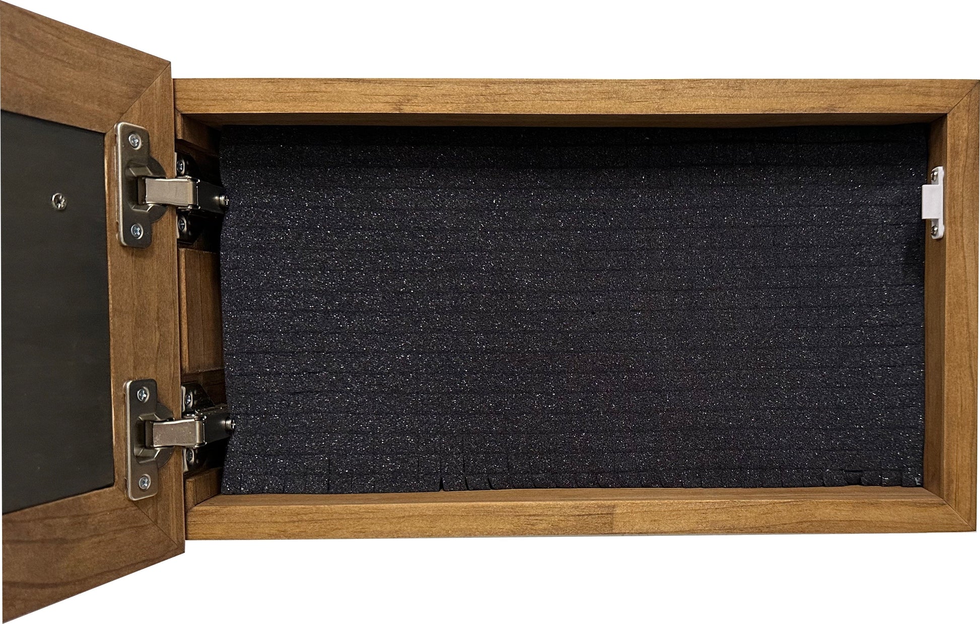 Securely store your firearm in plain sight with the Bellewood Designs Heron in Cattails Wall-Mounted Decorative Gun Cabinet. Your firearm and other tactical gear is easily accessible yet securely stored, so you'll never have to worry about leaving it unattended. Once you apply the key the lock immediately disengages and you're ready for self defense. This cabinet features a medium brown and cabinet, black background and eye-catching all natural maple Heron in Cattails scene. The cabinet will be a focal point of any room and no one will ever know what's inside!
