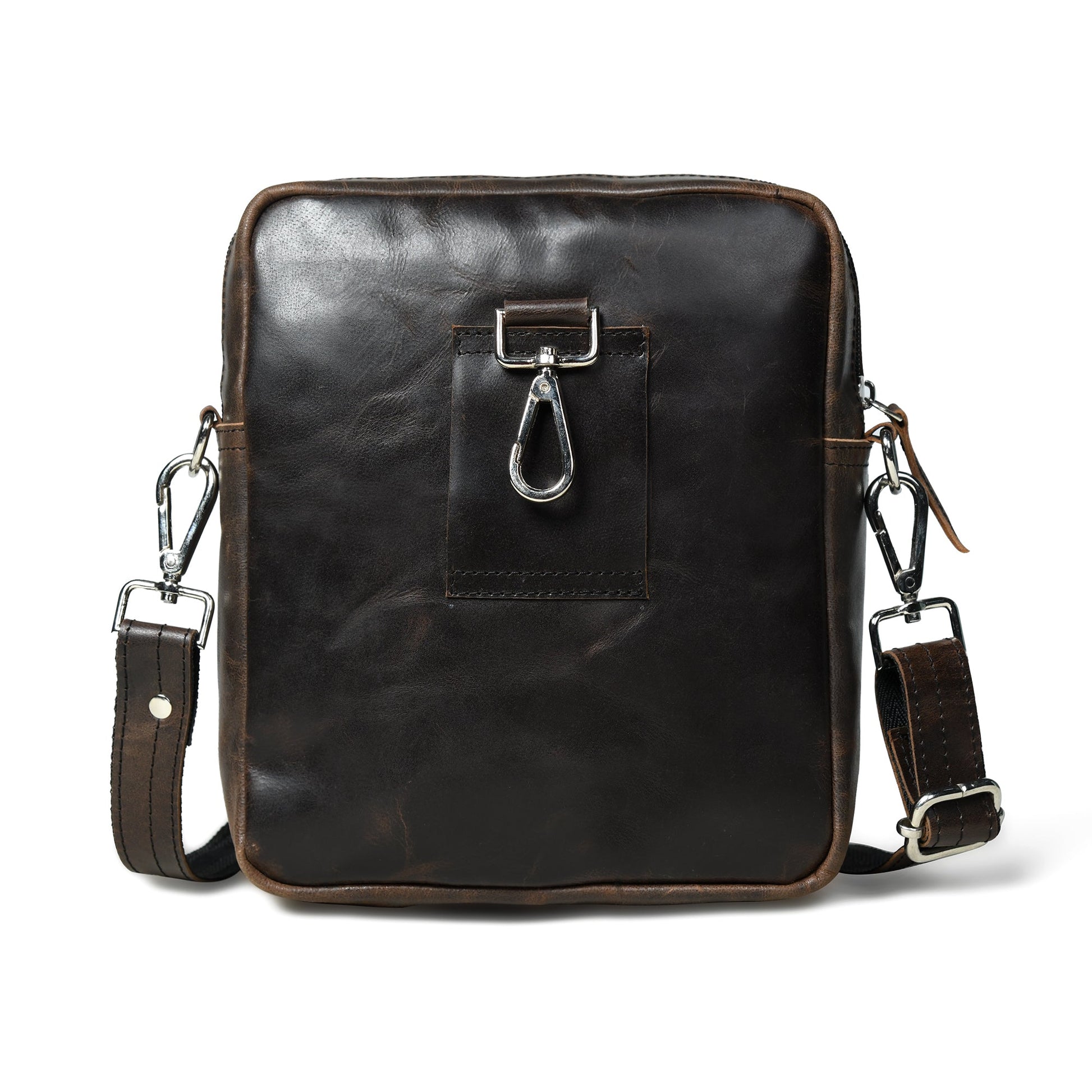 The bag typically features an adjustable shoulder strap for comfortable carrying, and multiple compartments and pockets for organized storage. Its spacious interior can accommodate documents, phones and personal items. The classic brown color complements various outfits, making it suitable for both casual and formal occasions. With its timeless design and sturdy construction, this messenger bag is a practical and fashionable choice for the modern man on the go.