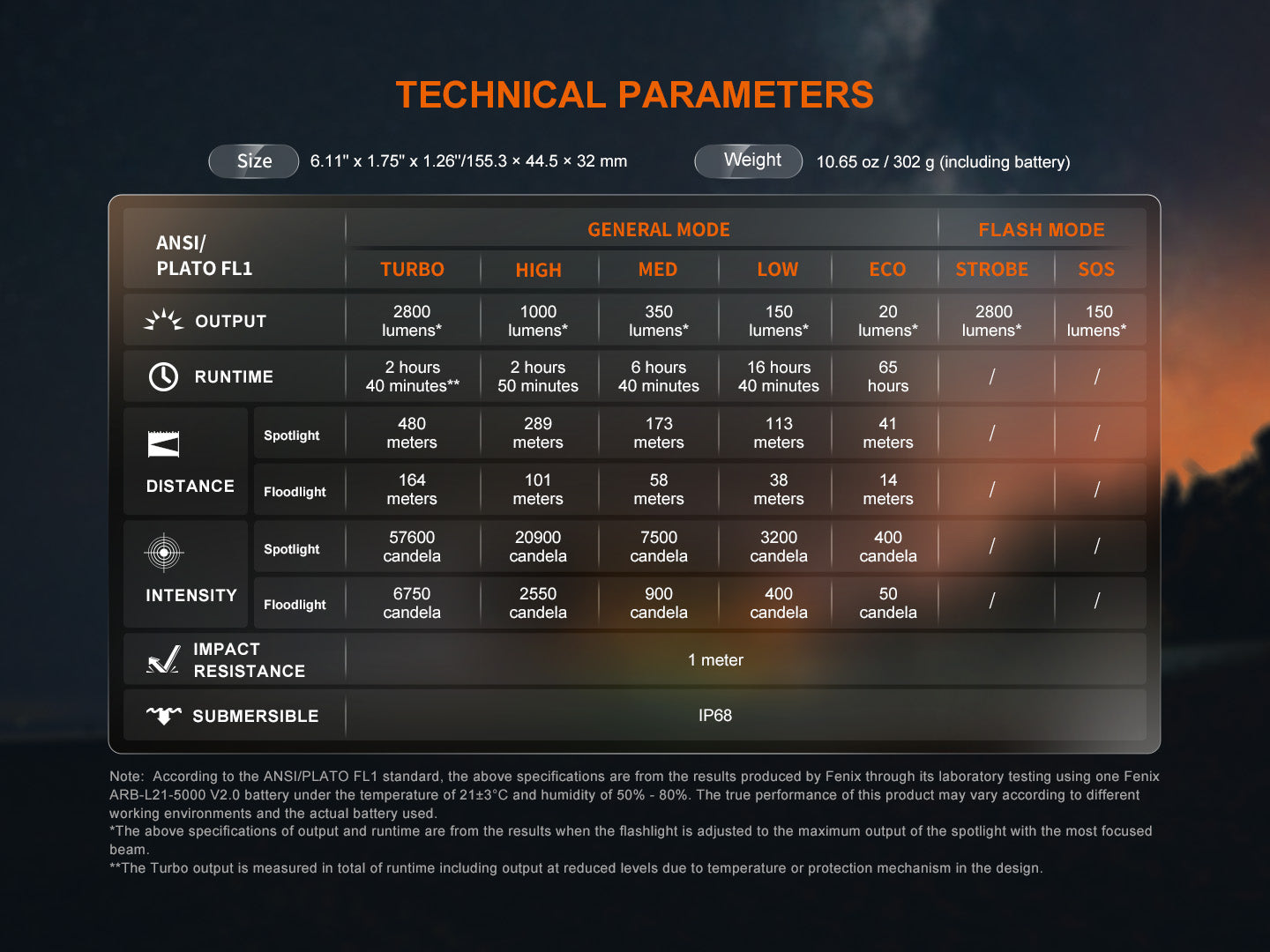 Powered by a single 5,000 mAh 21700 battery, it runs up to 65 hours on Eco mode and supports fast USB-C charging. The beam can reach up to 480 meters (1,575 feet), making it perfect for search and rescue, caving, and mountaineering.