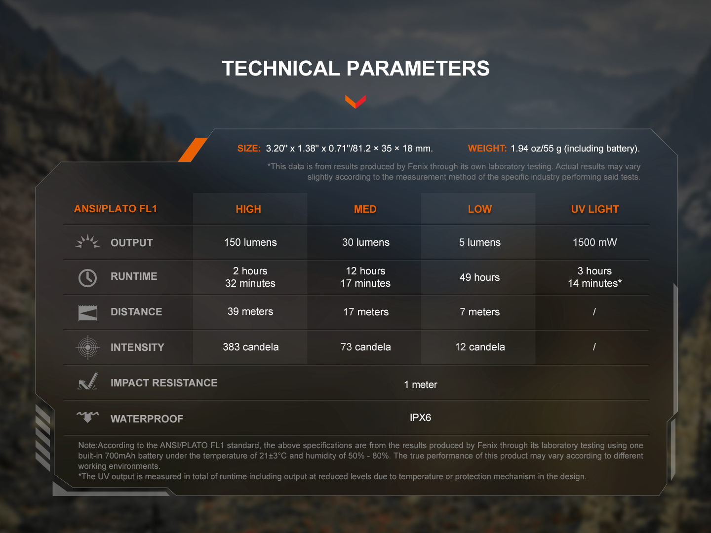 The Fenix SW05R is a versatile and compact flashlight designed for ultimate convenience and reliability. There are two variants and two colors for each variant. One variant features a white light plus a red light. The other variant features a white light plus a UV light.