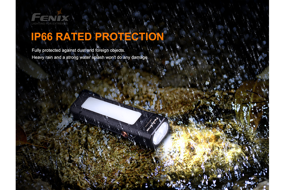 The Fenix WT16R is a cutting-edge rechargeable work light that emits up to 300 lumens. It is equipped with three lighting functions: spotlight, floodlight, and yellow flash. It also has a side light and a magnetic back which allows for multiple positioning options. The WT16R is suitable for industrial use and is conveniently attachable to almost any metal surface for hands-free operation. With a maximum beam visibility of 377 feet and an IP66 water resistance rating, the WT16R is powered by a 2000 mAh Li-polymer battery that can be charged using a USB Type-C Charging port. Get the Fenix WT16R now!