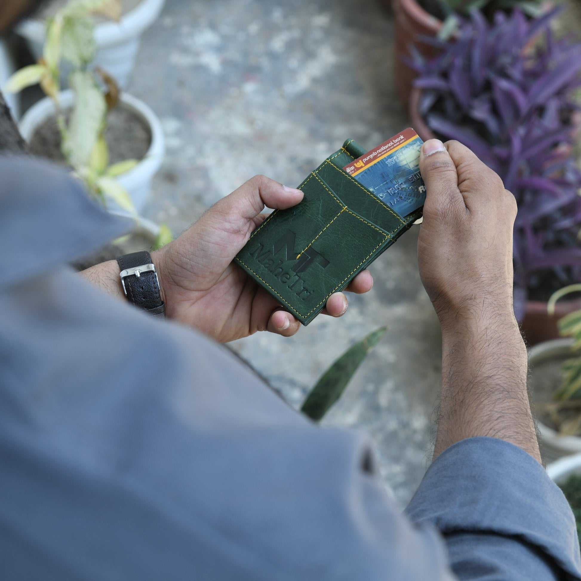 A beautifully crafted very slim profile money clipper wallet for men. It is handcrafted from buffalo leather by highly skilled artisans. This money clipper wallet features a few card slots, an Id slot, and an interior money clip that keeps the cash organized and safe.