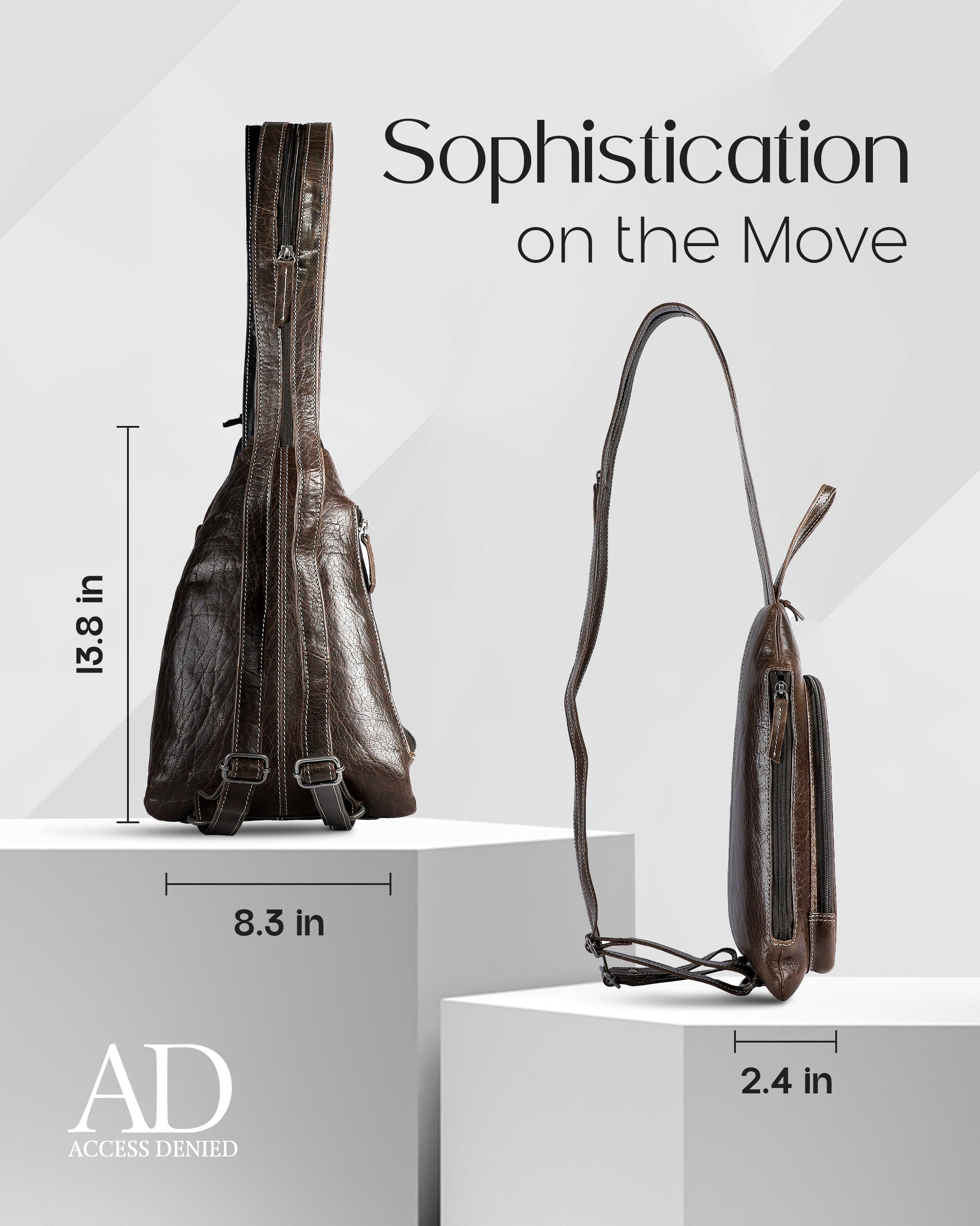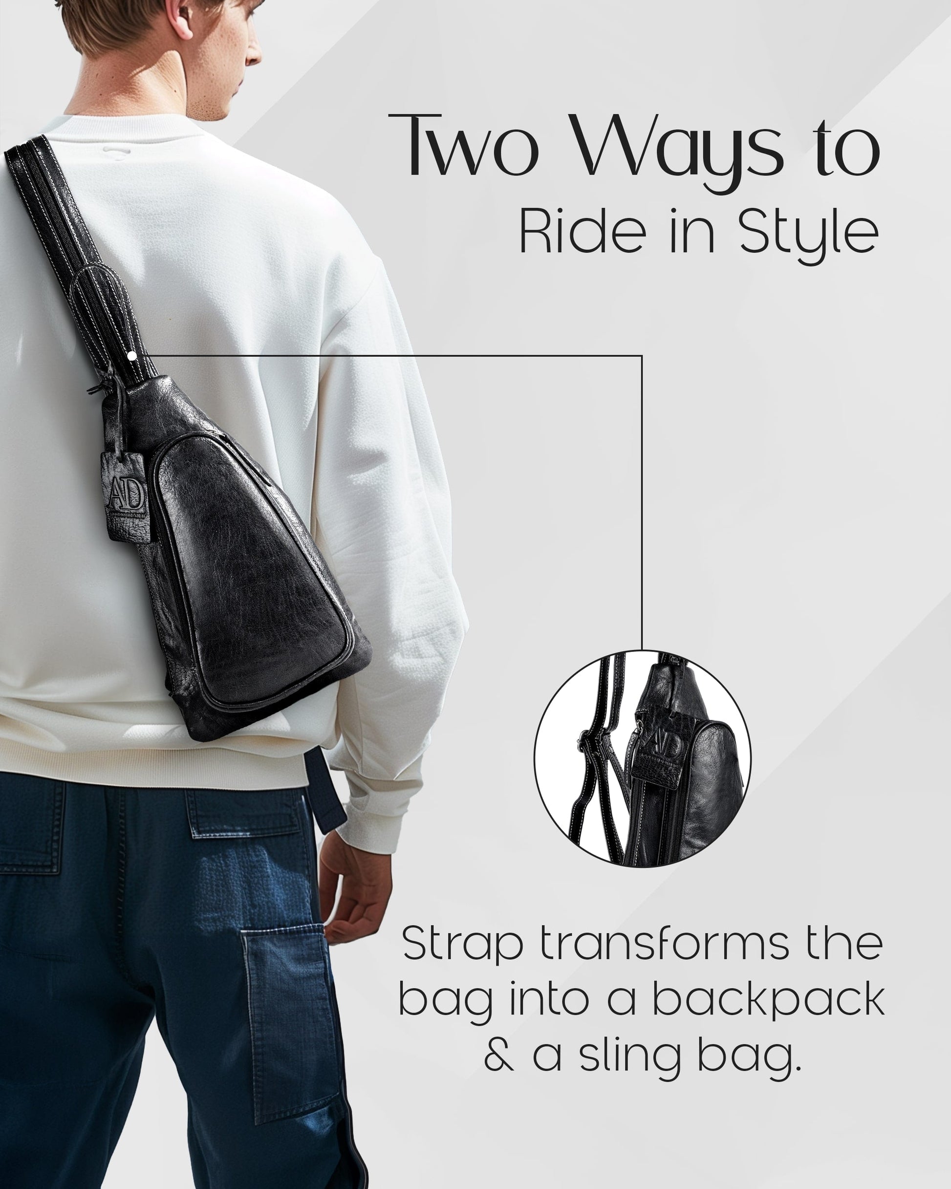 - LEATHER SLINGBAG DESIGNED IN LOS ANGELES : Crafted from 100% genuine leather, this shoulder bag for men is a crossbody bag perfect for daily commutes, bike rides across the city, and leisure outings whenever you don't want to carry a whole backpack or tote bag.