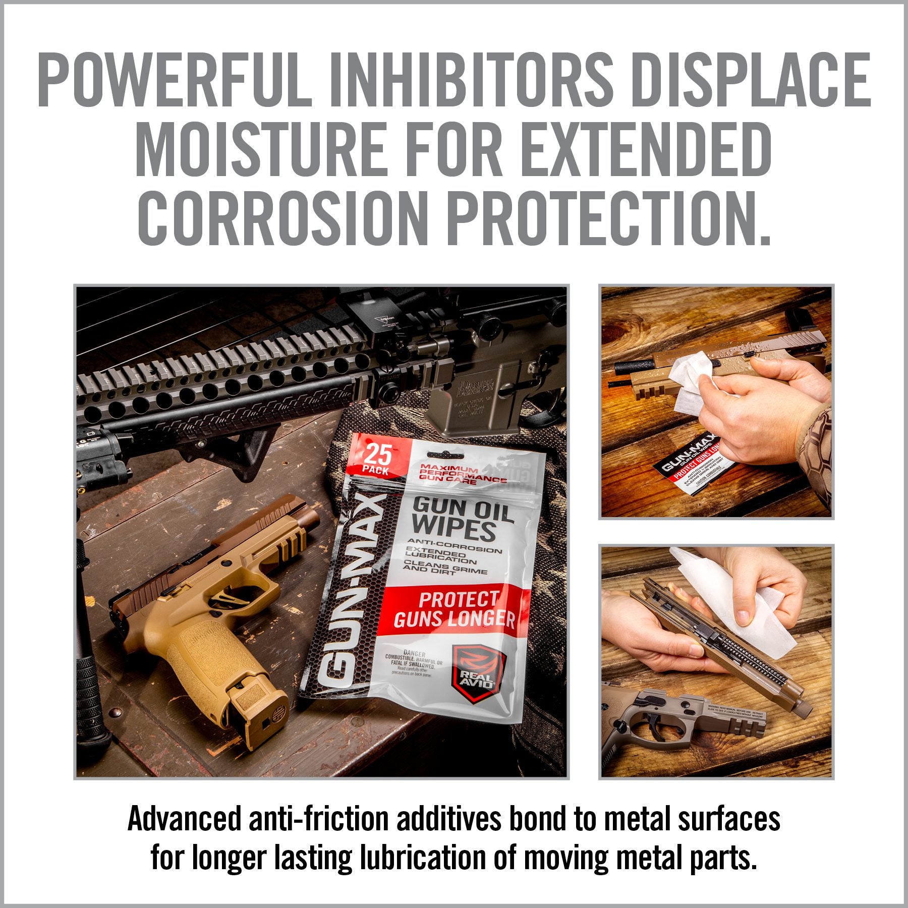 Pre-saturated with high-performance Gun-Max Gun Oil that ensures extreme, long-lasting protection against corrosion and long-lasting lubrication. Gun-Max was chemically engineered to excel in harsh, demanding environments. A strong corrosion inhibitor and rust protectant create an impenetrable moisture barrier and protect against the environment. The advanced lubricating compound does not freeze or sludge in cold temperatures and outlasts in heat and dust. Lubrication reduces friction and minimizes malfunctions of moving parts. Gun cleaning wipes will leave a thin, non-greasy coating and will help you avoid overlubricating Individually packaged, sealed in a compact pocket, the wipes are perfect for in-field use. It’s a go-to solution for hunters, for concealed carry, for travel, or for tactical and survival applications. Maintain your firearm lubricated and rust-free and always wipe it off with Gun-Max Gun Oil Wipes before storing.