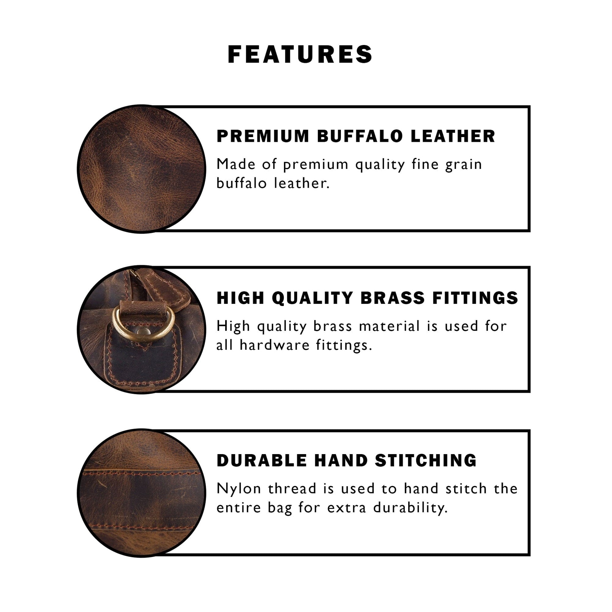 Our Premium buffalo leather travel duffel bag which is trendy, unique, and classy is a perfect match for your adventurous trips. Handcrafted by talented leather craftsmen which makes it unique and one of a kind. Whether you are planning for a small weekend trip or a business trip, this buffalo leather duffle is the perfect match.