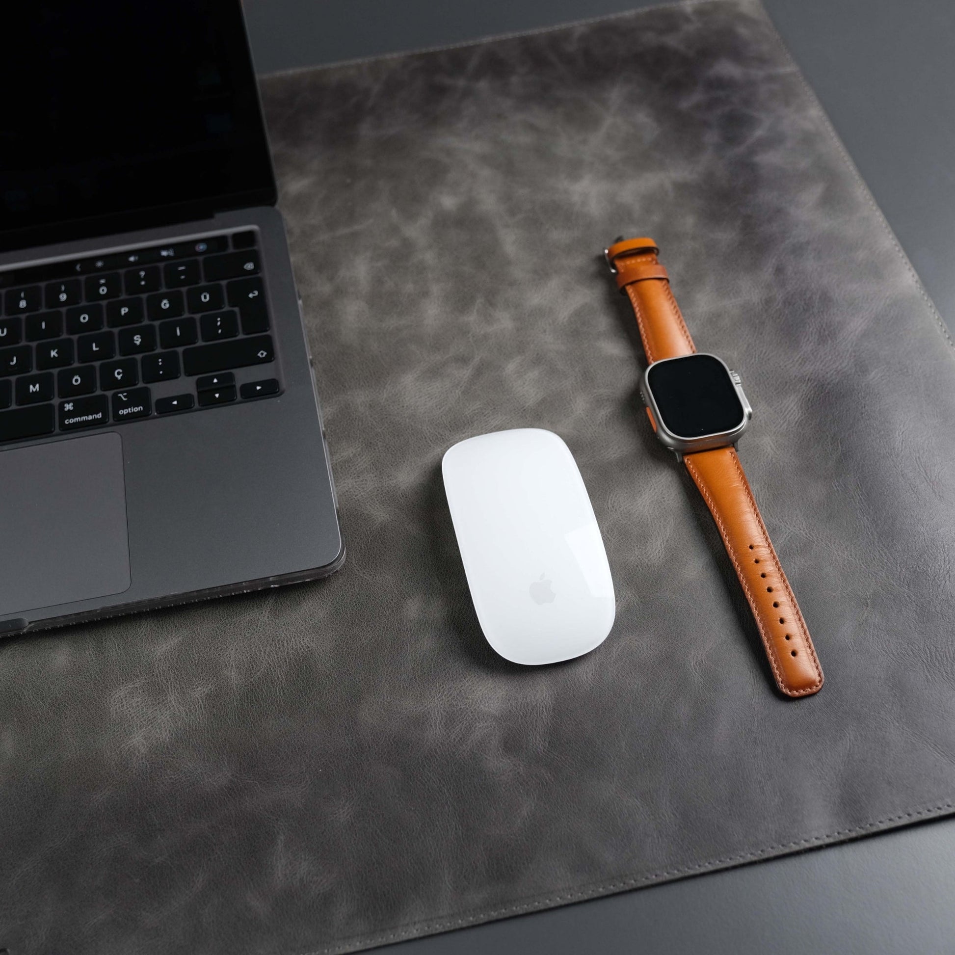 Carefully produced from real calfskin leather, the Jersey model leather desk pad by TORONATA adds a refined touch to your workstation. These grey leather desk pads, which come in two sizes (36x19 inches and 14.6x31.5 inches), blend style with utility for use in both home and office settings. They give stability with their non-slip bottom and shield your desk from daily wear and tear, spills, and scratches. The slick surface makes using a mouse and keyboard easy. The Jersey model leather desk pad is made for customer happiness, ease of maintenance, and practicality—perfect for home offices, executive workstations, or gaming setups.