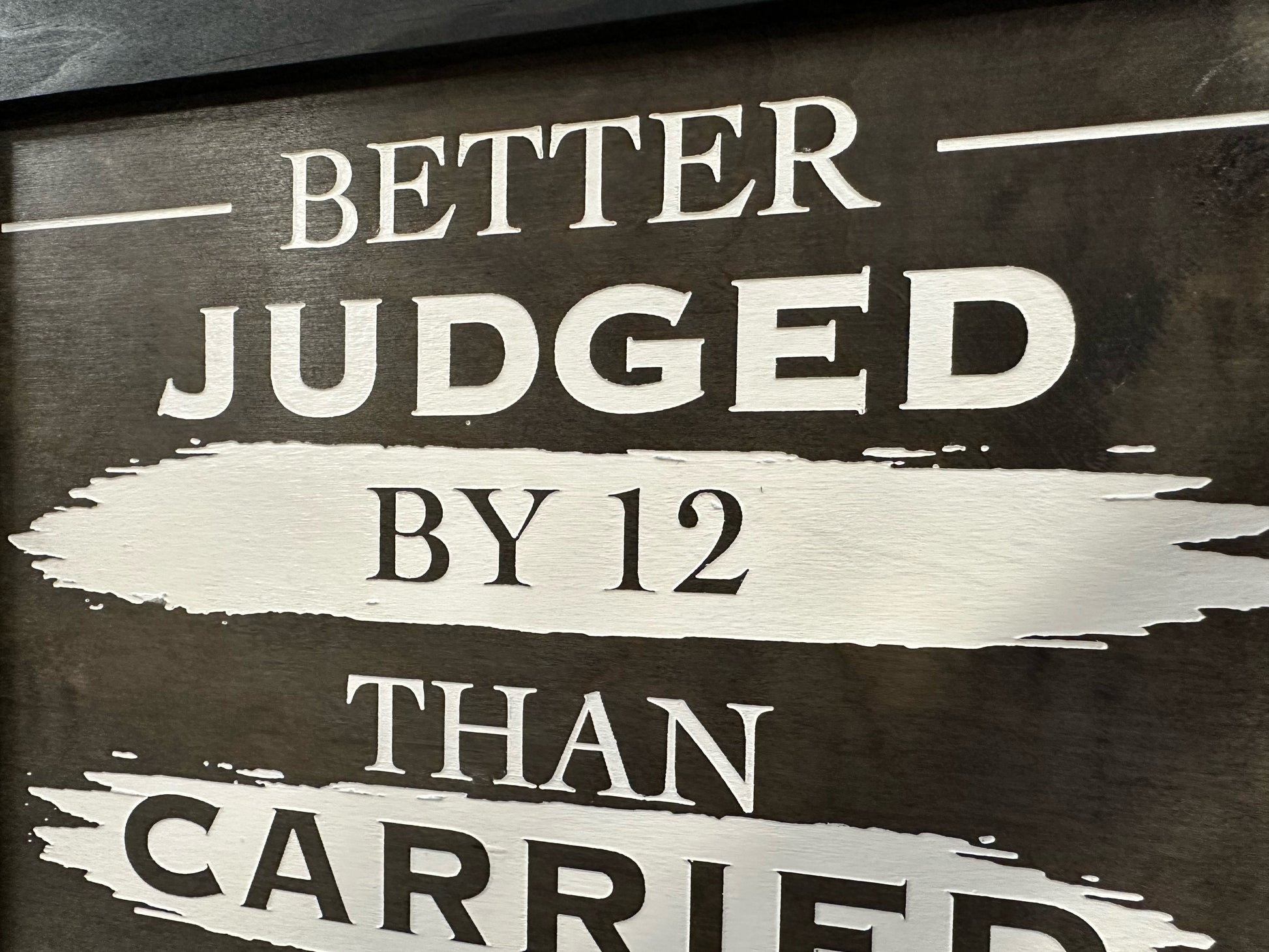 2nd Amendment "Better Judged By 12 Than Carried By 6" Hidden Gun Cabinet.