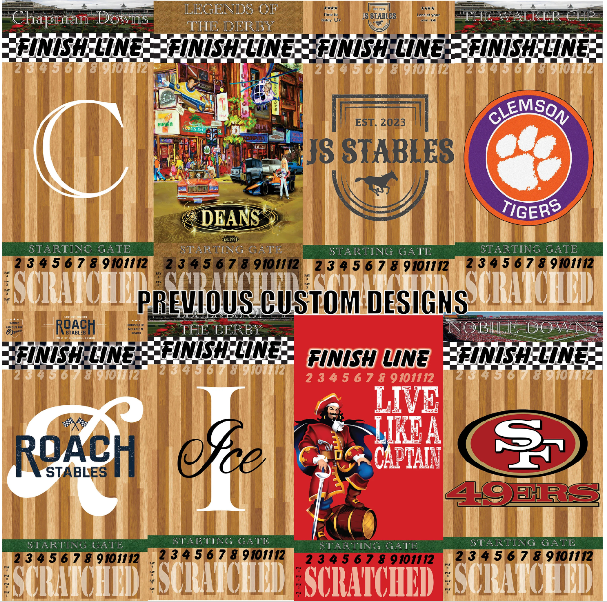 - custom graphics optional including background design, pay outs, drinking spaces, add a name (ie. Smith Downs).