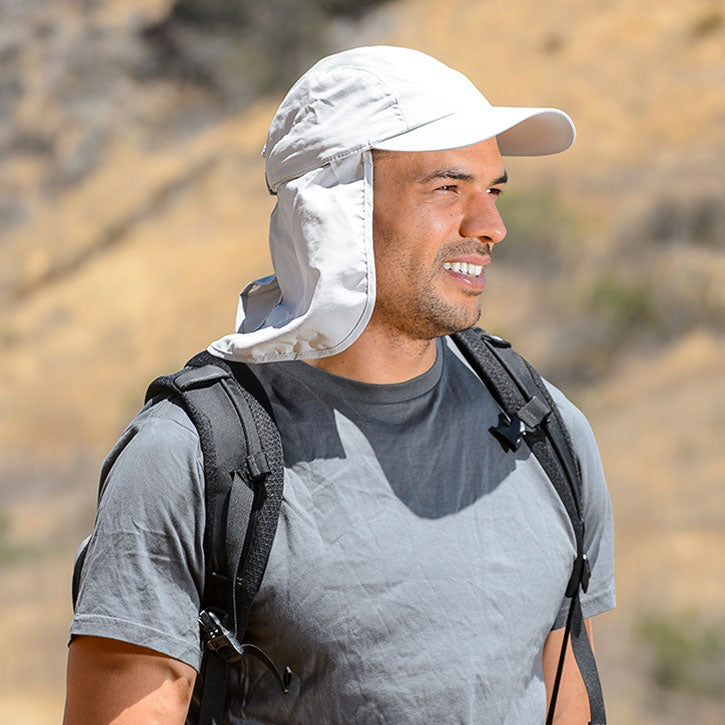 Use the drawstring cord to adjust the size of this taslon UV cap to your personal liking while ensuring the back of your neck is protected by its back flap.