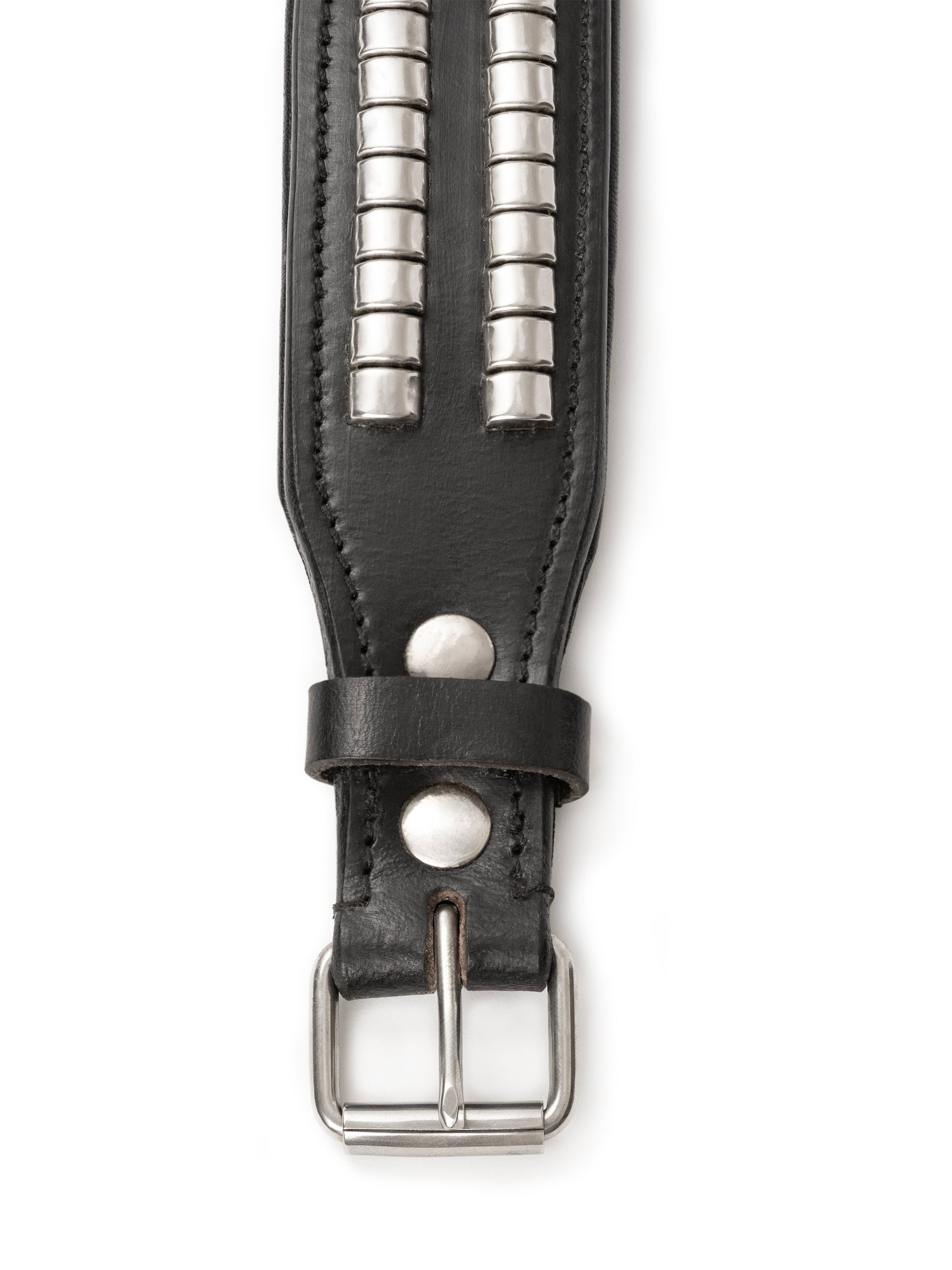 - Colour and Pattern: Black with stainless steel studs.