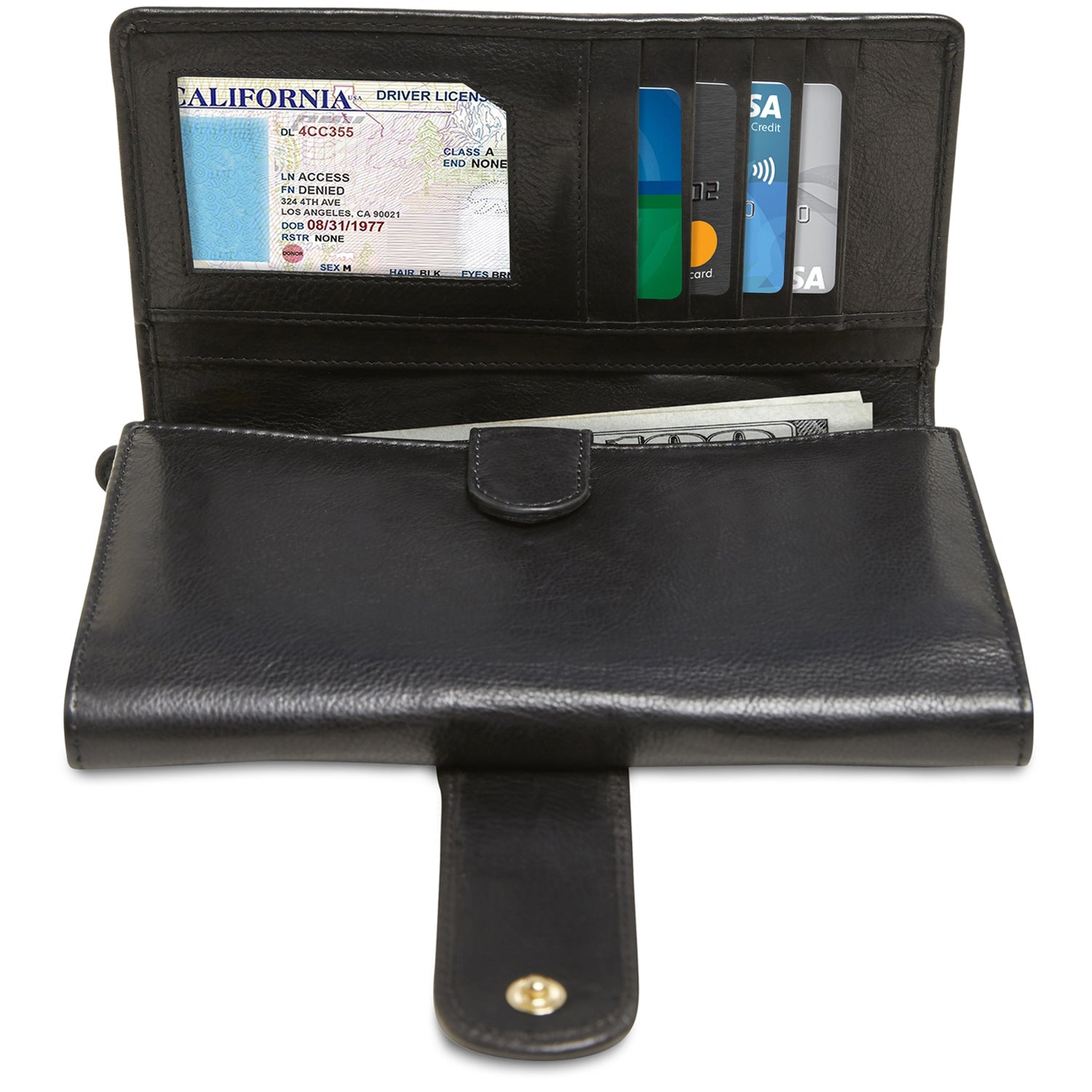 - This Wallet clutch for women is made with high quality genuine full-grain leather that is extremely soft and durable. Its smooth texture makes for an elegant organizer, perfect for everyday use. This clutch is made with high fashion and design style in mind for you to have the perfect all in one wallet for everyday use.