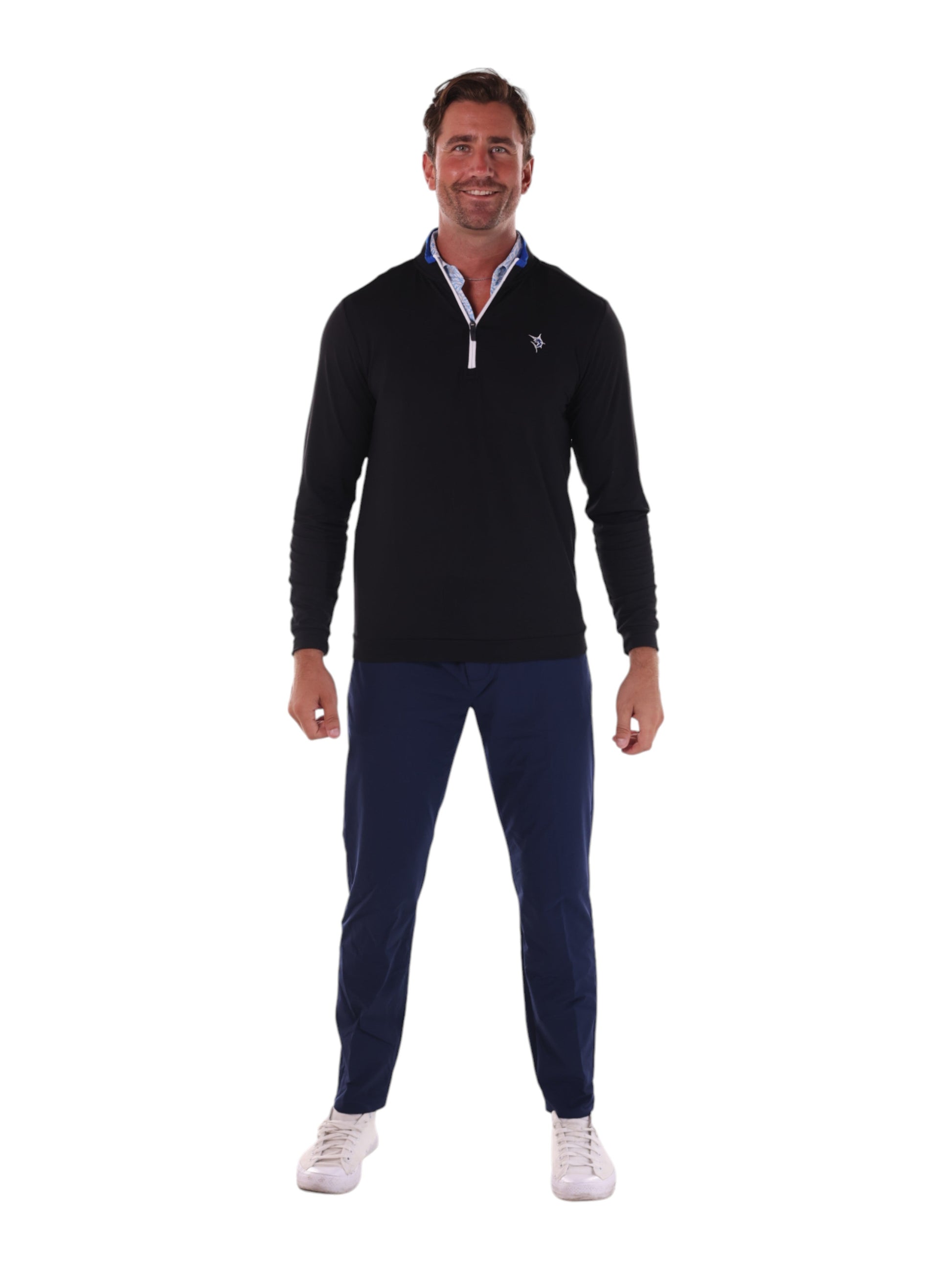 Performance quarter zip featuring lightweight soft poly spandex wicking fabric. Sun Protection, UV50 and patented silicone sleeve grip which holds your sleeves in place. Perfect for spring and summer with lightweight performance fabric that has smooth hand feel. A great layering piece under a vest or jacket for cooler days.