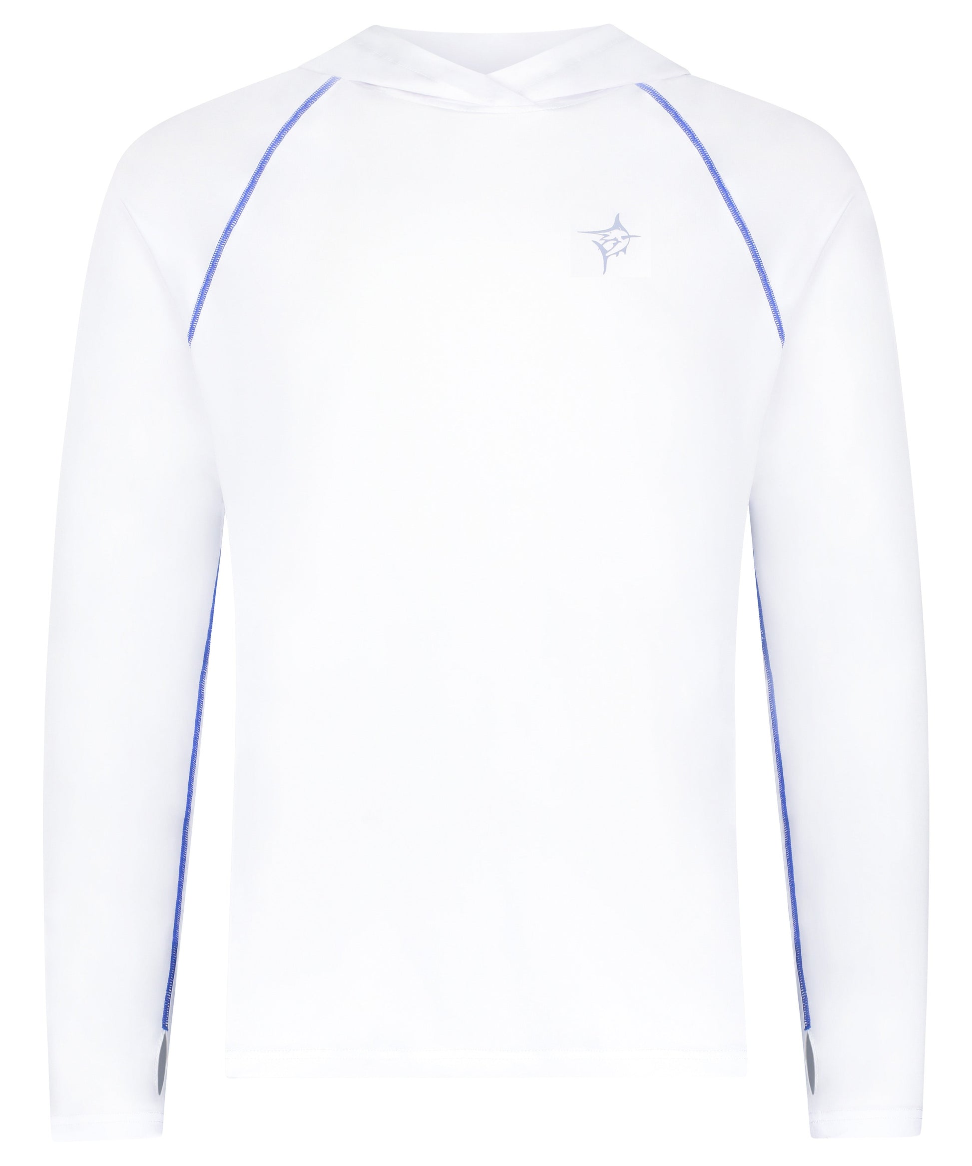 NEW AND IMPROVED. Performance lightweight hoody featuring soft poly spandex wicking fabric. Full Sun Protection, UV50 keeps you out of the sun and protected. Thumb holes to ensure full body protection and sleeves that stay in place. Plus added style with primary logo on the sleeve and contrast stitching. Great for the boat, beach and whenever you want to be looking good and protected from the sun.