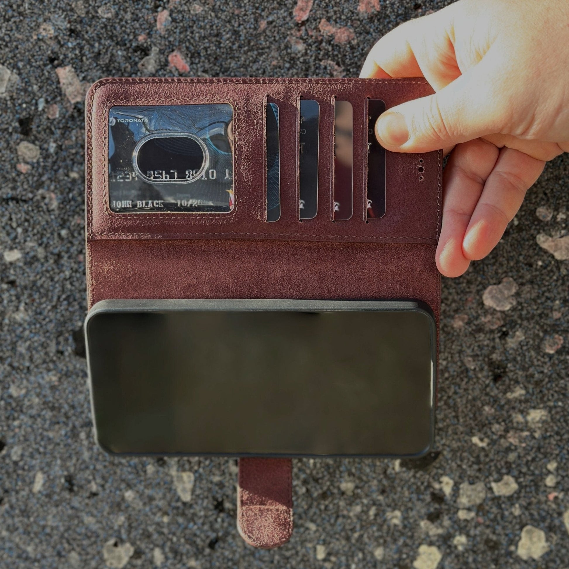 The TORONATA Nevada S24 Plus leather wallet case was designed with the perfect balance between durability and elegance in mind, allowing you to enjoy the full features of your new smartphone without risking unwanted damage. Made with genuine cowhide leather, available in chic colors, with an anti-scratch anti-drop design that protects the device, plus 4 functional card slots and RFID technology, this S24 phone case converts into a kickstand, making ideal for hands-free video calls, movies and videos!