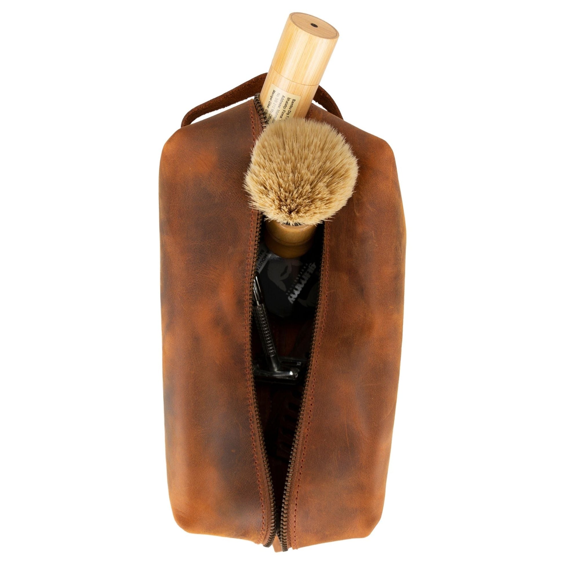 - 100% Full-Grain Leather: This dopp kit is made from premium full-grain leather, which has great quality and durability.