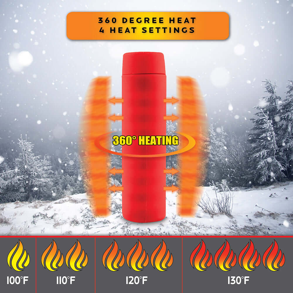- 360 DEGREE HEAT – Complete Exposure of 4 Heat Settings: Heat within seconds for maximum comfort and battery life