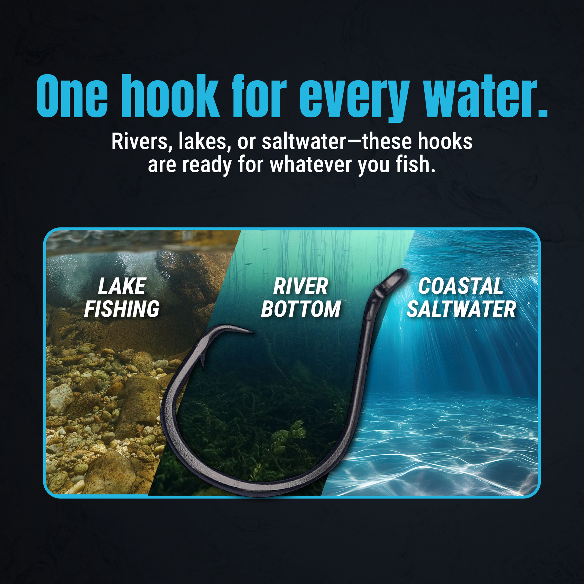 - Sharp & Secure Hookset: The sharp, inward-facing point ensures a strong, reliable hookset. Our Catfish Hooks minimize gut hooking, making it ideal for catch-and-release.