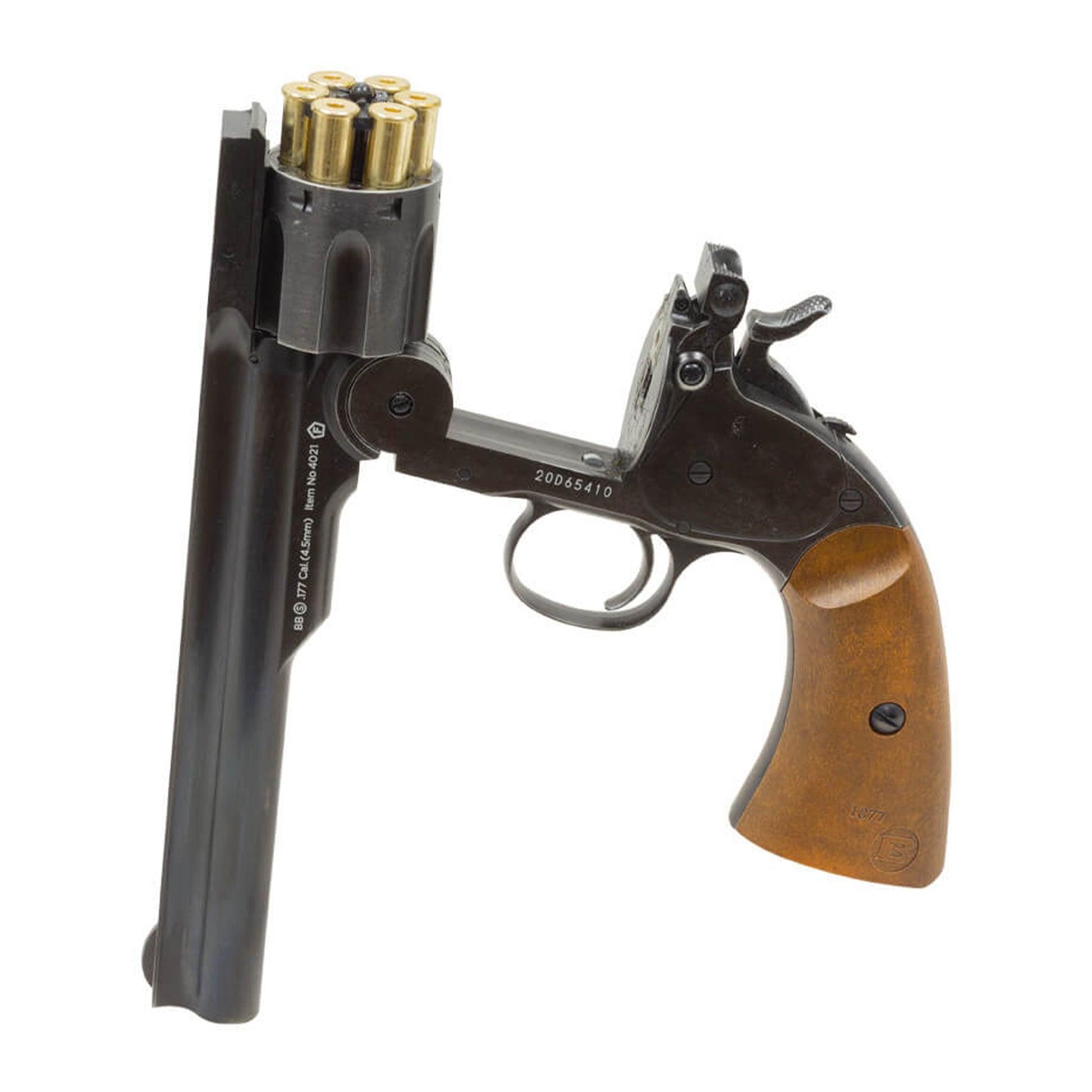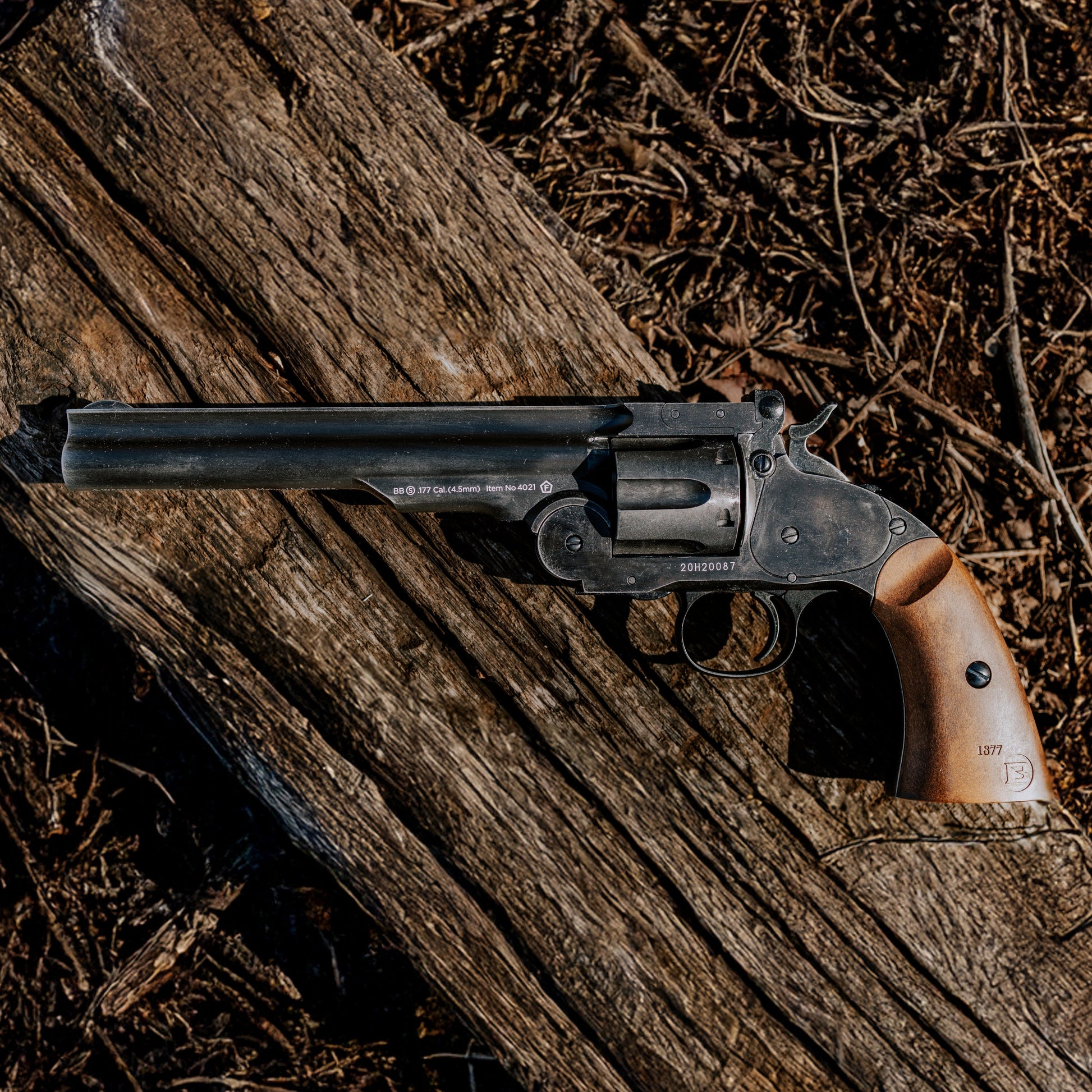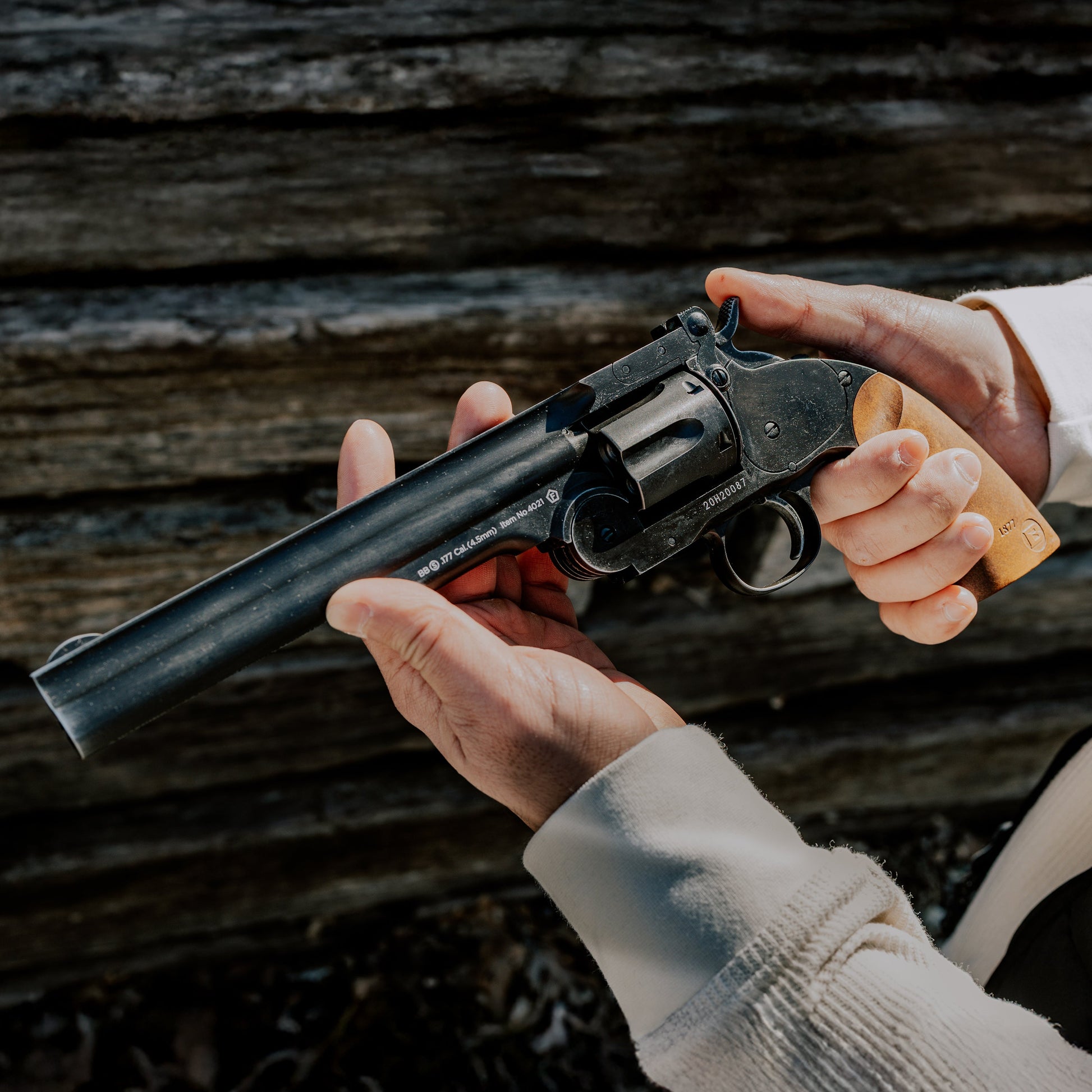 The Schofield is probably what you envision when you think of a Wild West shootout. Shooting with this beautiful piece of frontier history is your chance to unleash your inner outlaw or sheriff depending on your team preference (no judgement either way). Perfect on the range, for firearm proficiency and training, or backyard plinking, the Schofield No.3 Vintage Revolver from Barra Airguns is the right pistol at the right price.
