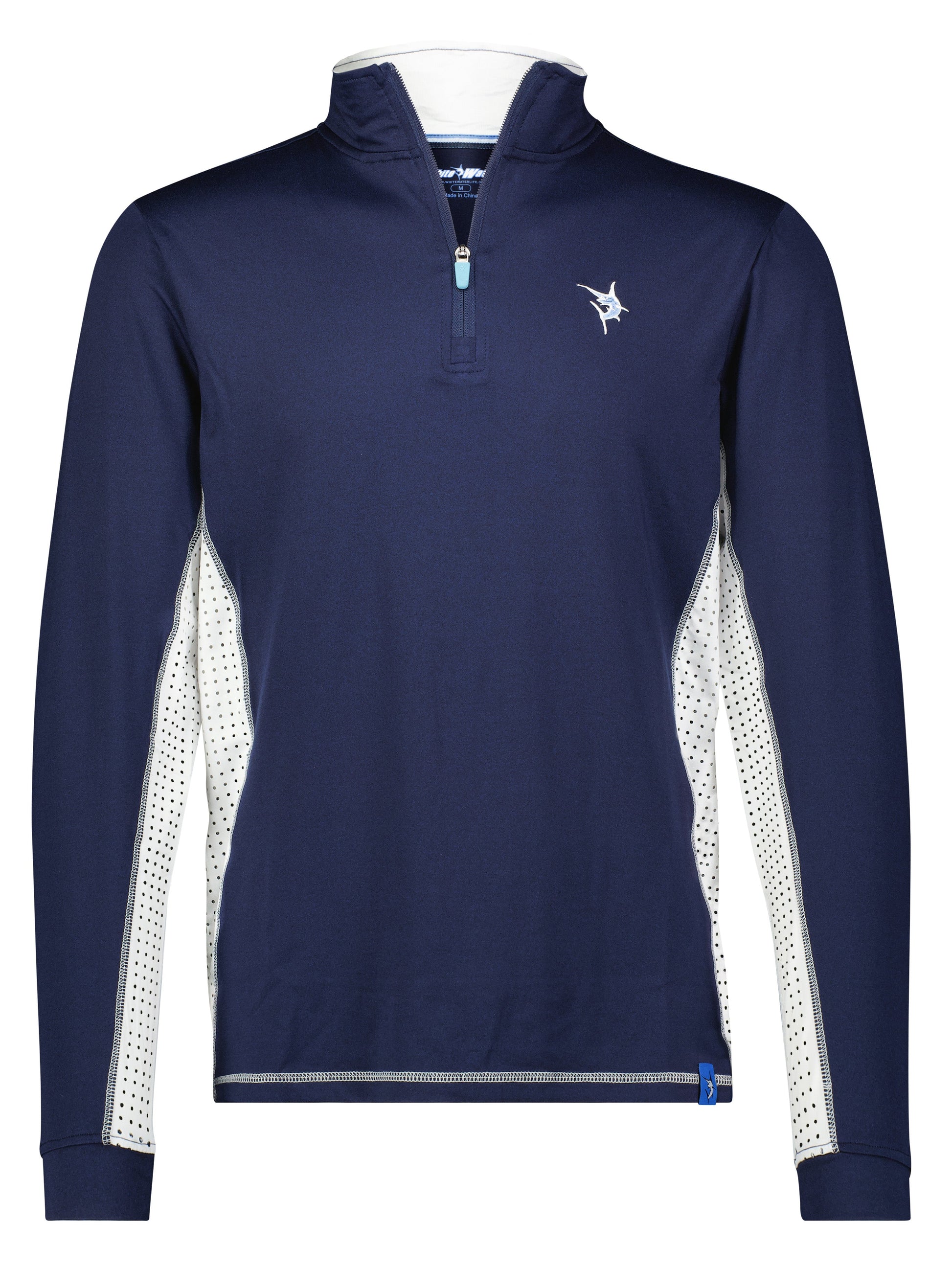 Light weight performance quarter zip featuring soft poly spandex wicking fabric. Sun Protection, UV50 with laser insert venting to keep you cool when needed and patented silicone sleeve grip which holds your sleeves in place and keeps them clean. The stylish Southport also features contrast collar, cuffs, and venting. Perfect for every day.