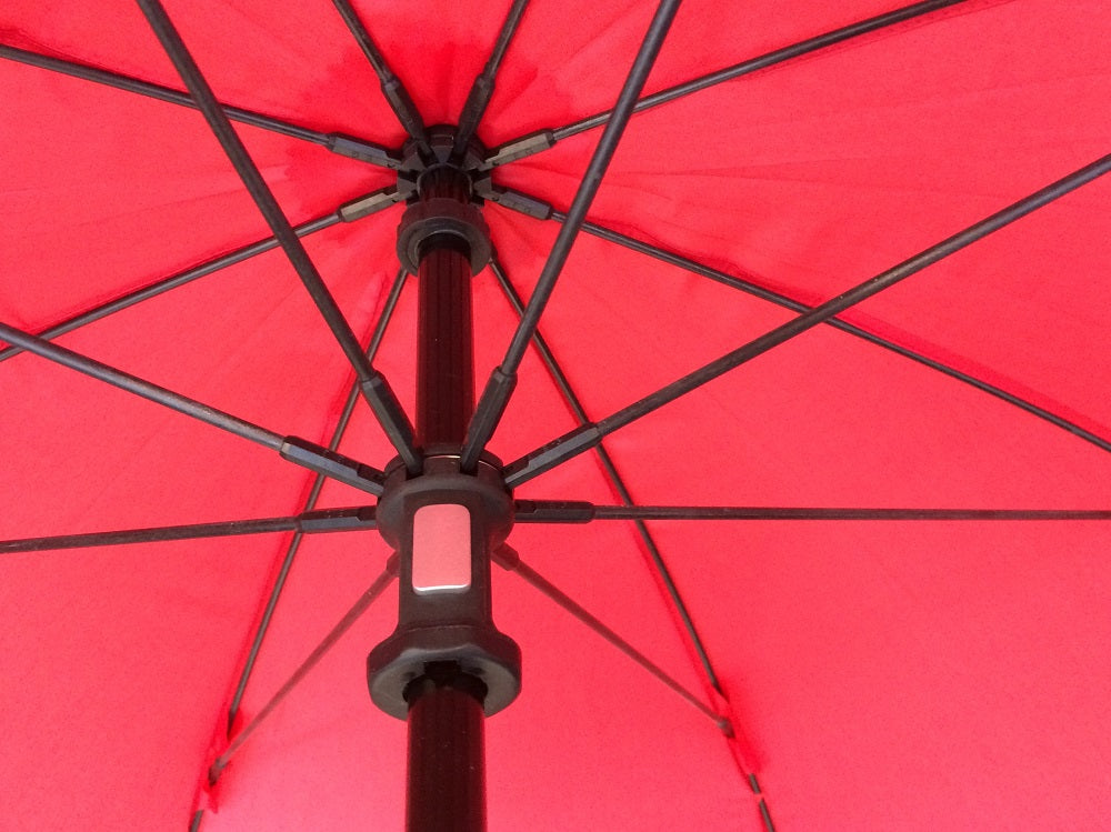 - The entire umbrella frame consists of elastic and extremely break-proof fiber glass material. The frame is nearly completely metal-free and so corrosion-proof