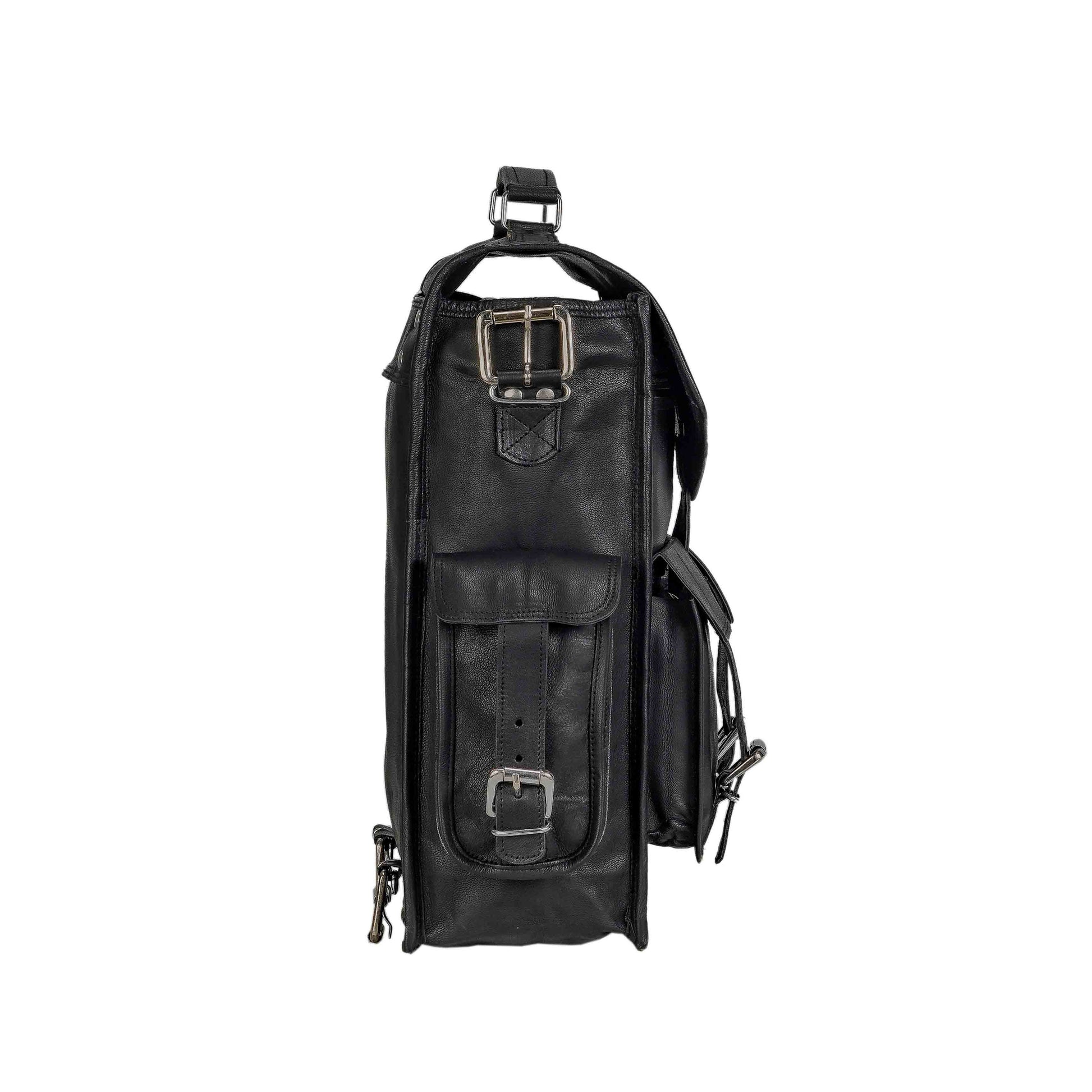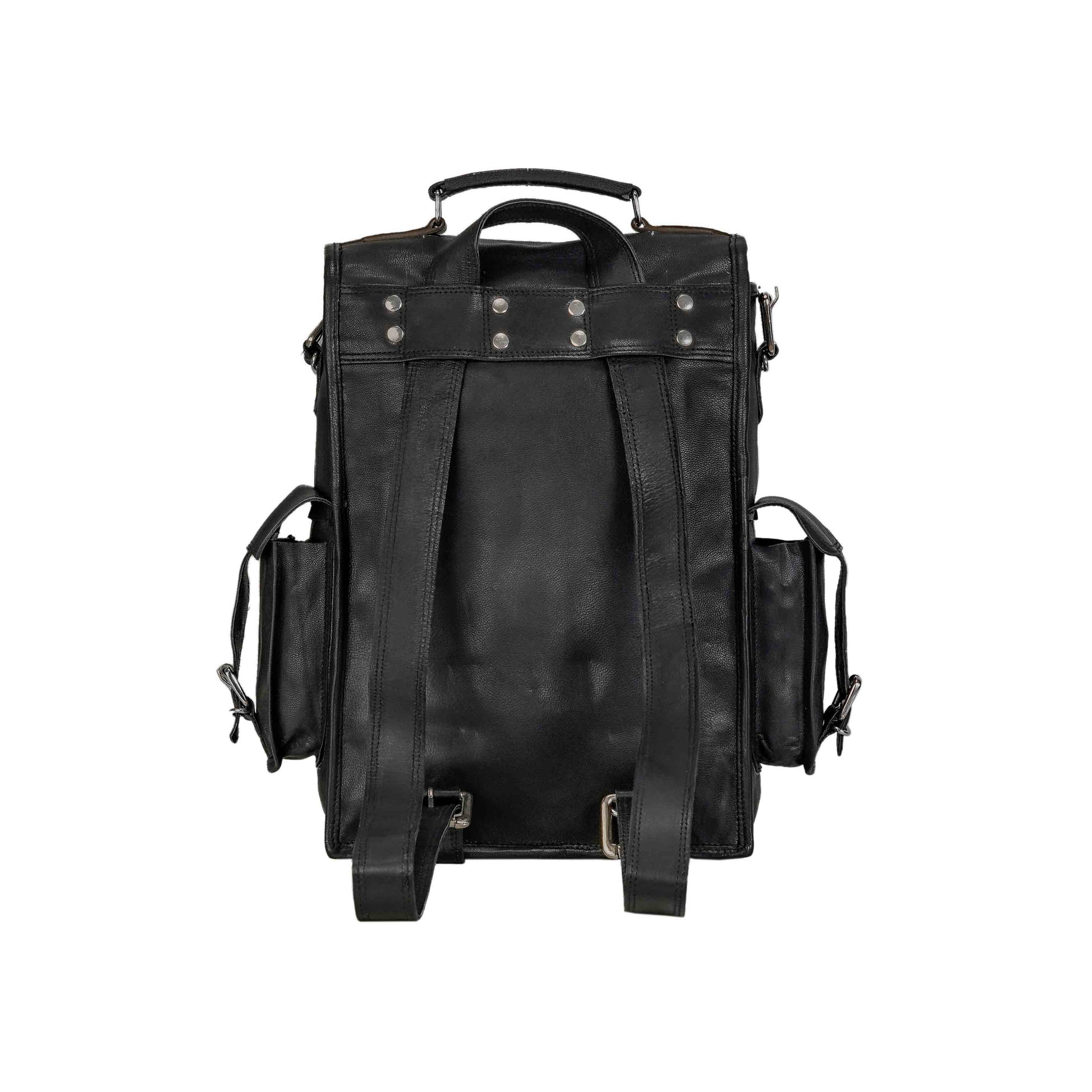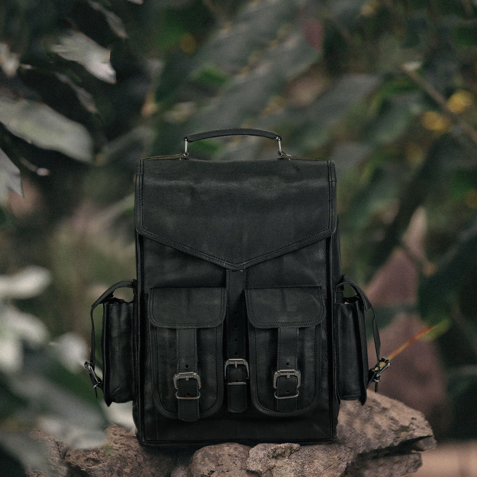 xThis versatile and stylish black leather backpack and messenger bag is an ideal choice for carrying your daily essentials in style. The bag serves multiple purposes, as it can be carried as a backpack and also as a messenger bag. It comes with four outer pockets to provide enough space for carrying small accessories. The flap comes with a smart buckle lock to provide ease of use. The inside main compartment is spacious enough to carry small laptops, tablets, etc. The compact size also makes it travel-friendly.