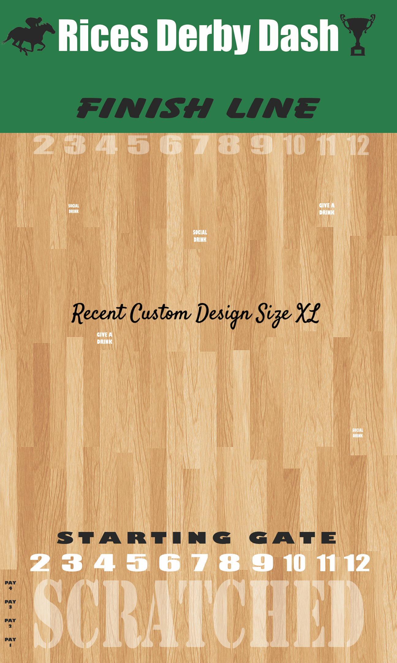- custom graphics optional including background design, pay outs, drinking spaces, add a name (ie Smith Downs).