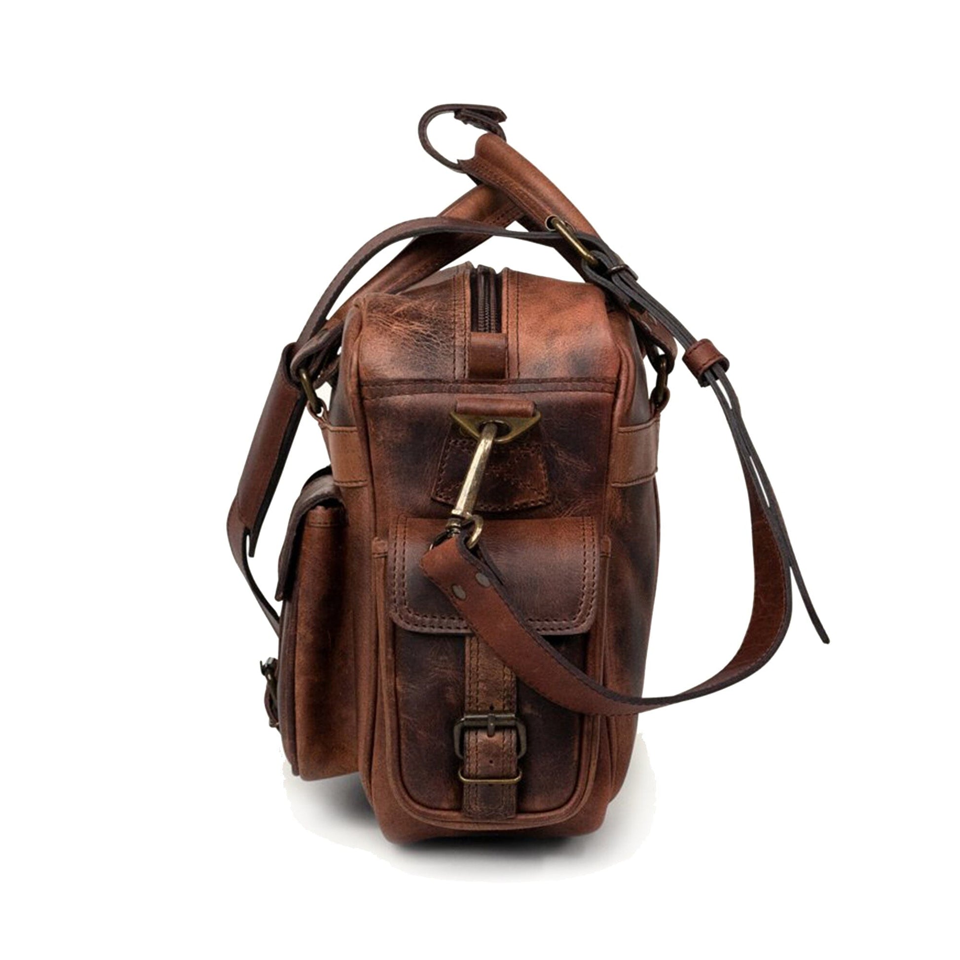 - Carry handle with brass buckles