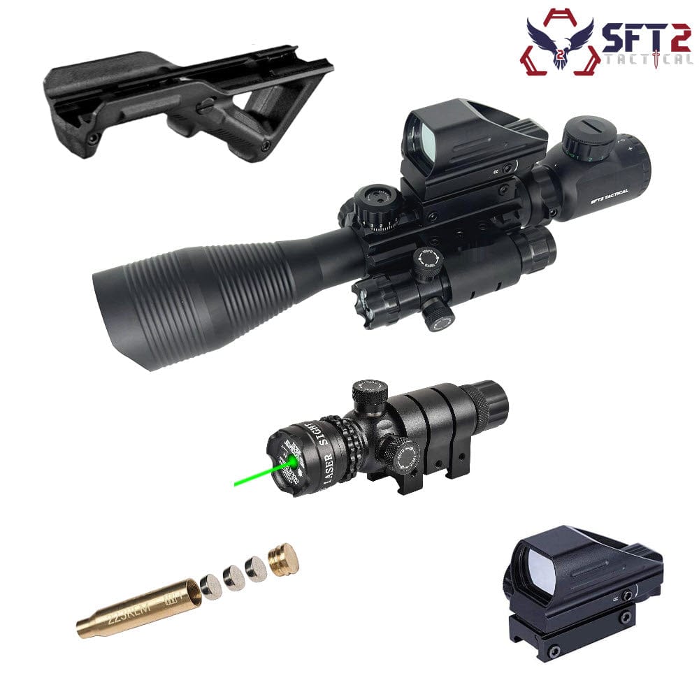 SFT2 ModScope: Available in 3-9x, 4-12x, or 4-16x configurations, each scope comes equipped with a holographic red dot mounted on top for seamless long-to-short range transitions. Nitrogen-purged, built like a tank, crystal-clear optics, and excellent light transmission make this scope ready for any environment. Pair it with a selectable red or green laser for a reliable secondary aiming option.