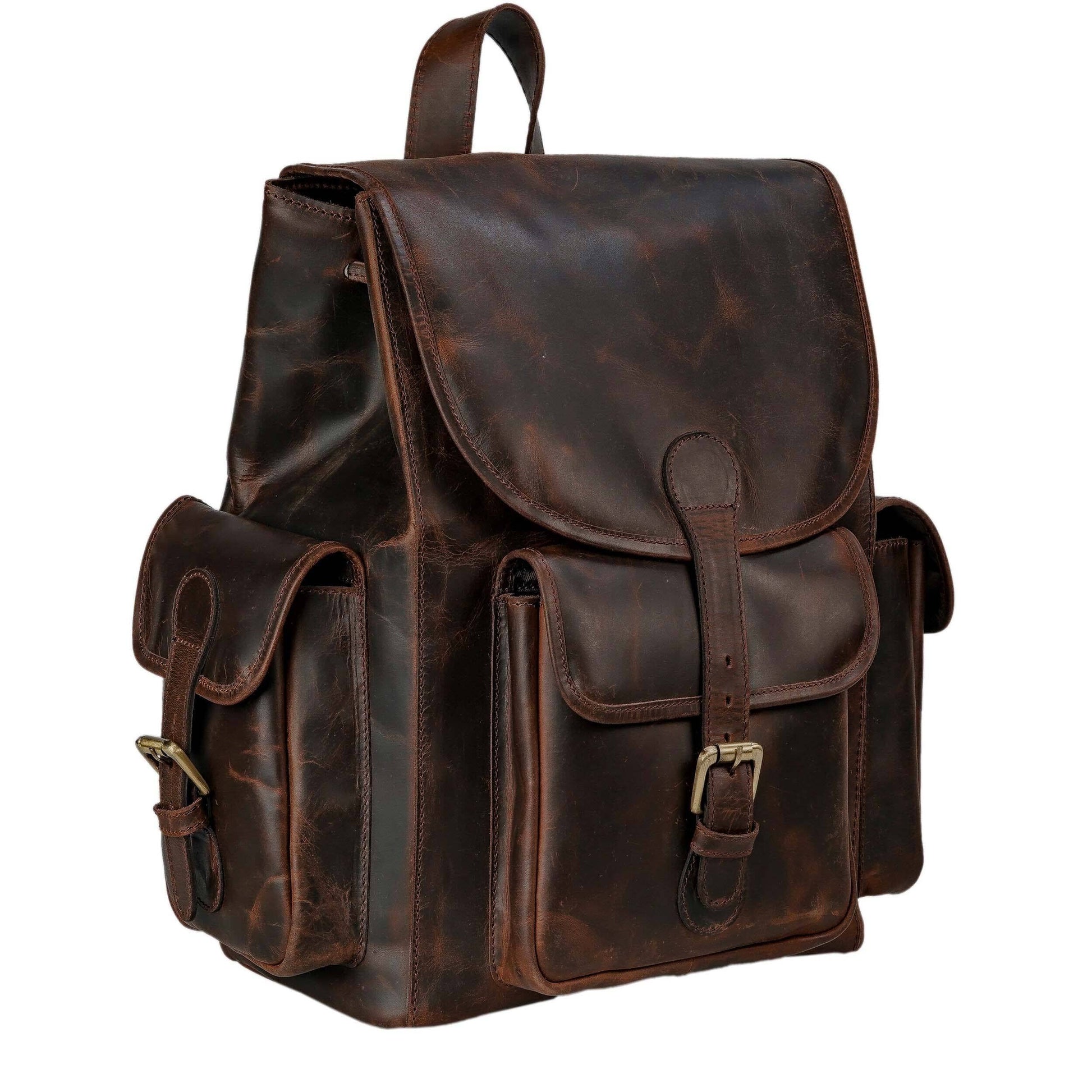This compact yet spacious backpack is a must-have for your everyday essentials. The bag can be your everyday partner for college, school, the office, or small outings. The backpack is handcrafted from genuine buffalo leather, which is one of the highest quality leathers available, which makes this bag a premium and smart choice. The leather texture is vintage in look and soft in feel.