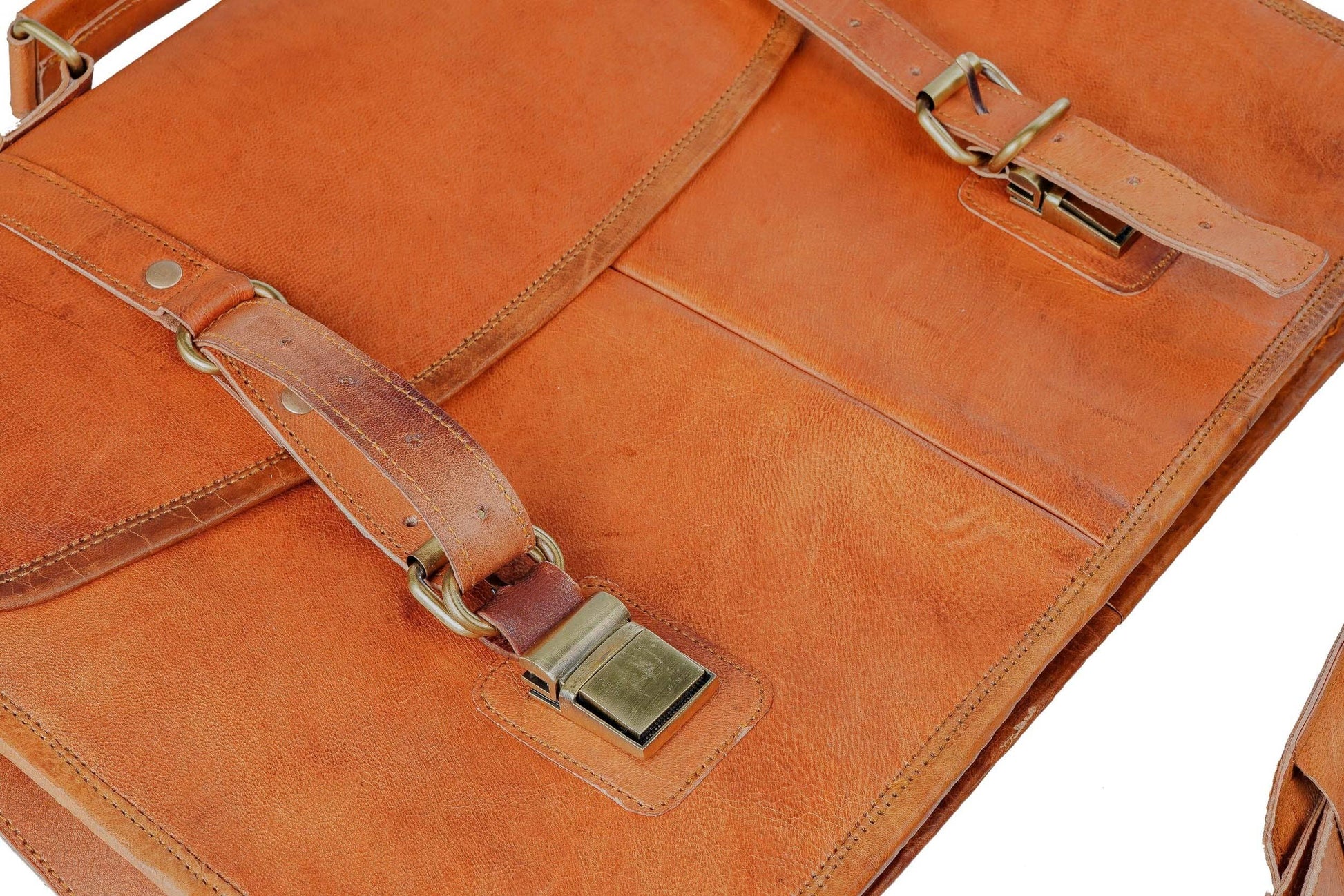 This leather messenger bag is an ideal choice for carrying your notebooks, laptop, and other daily essentials comfortably. This shoulder bag is handcrafted from genuine goat leather. The bag is a vintage brown color with brass hardware to give it a stylish yet sophisticated look.