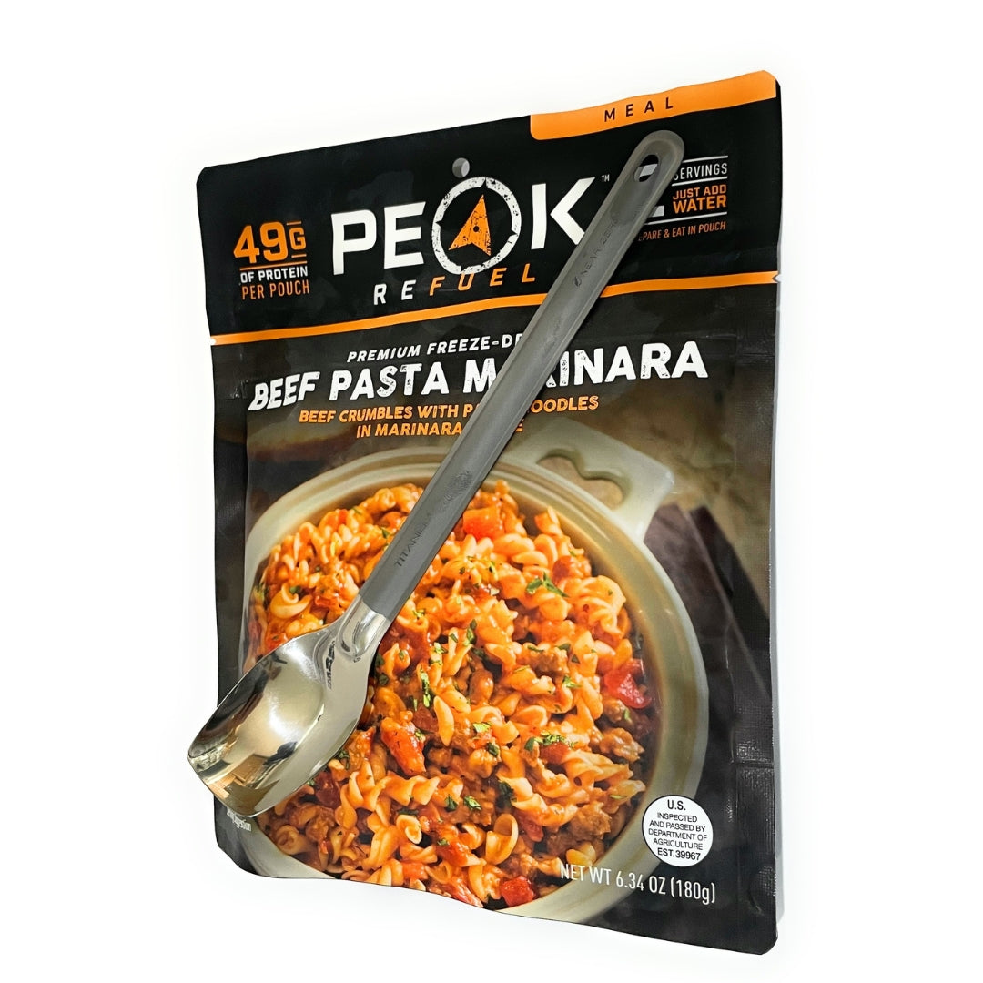 - Ideal for reaching the bottom of freeze-dried meal pouches without mess.