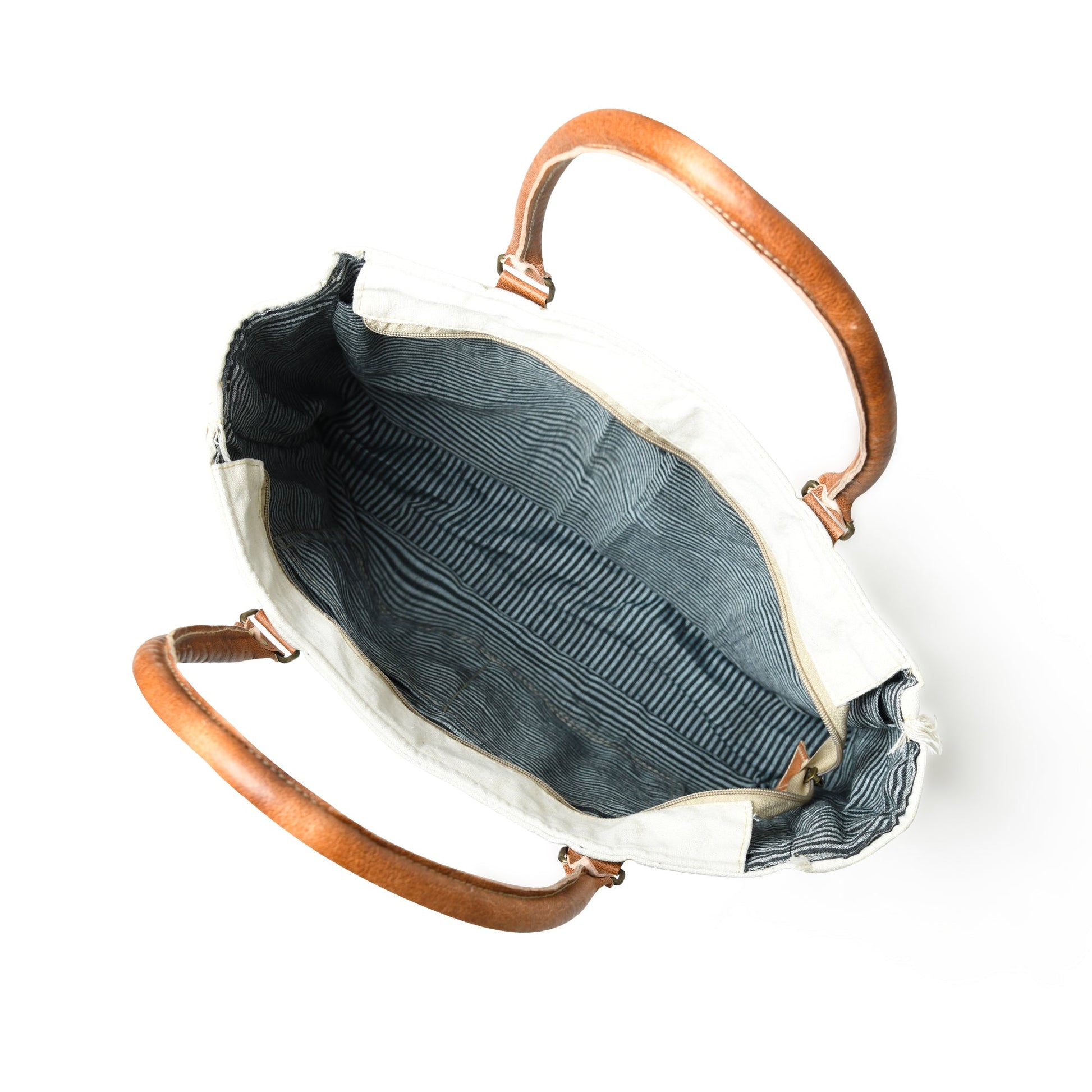 The large central compartment, enclosed with a zip, accommodates books, files, or documents, making it an ideal companion for an office or college. Versatile as a shopper bag, handbag, or shoulder bag, it boasts durability and eco-friendliness with its chemical-free, naturally treated leather and canvas construction. Elevate your every day with this avant-garde accessory.