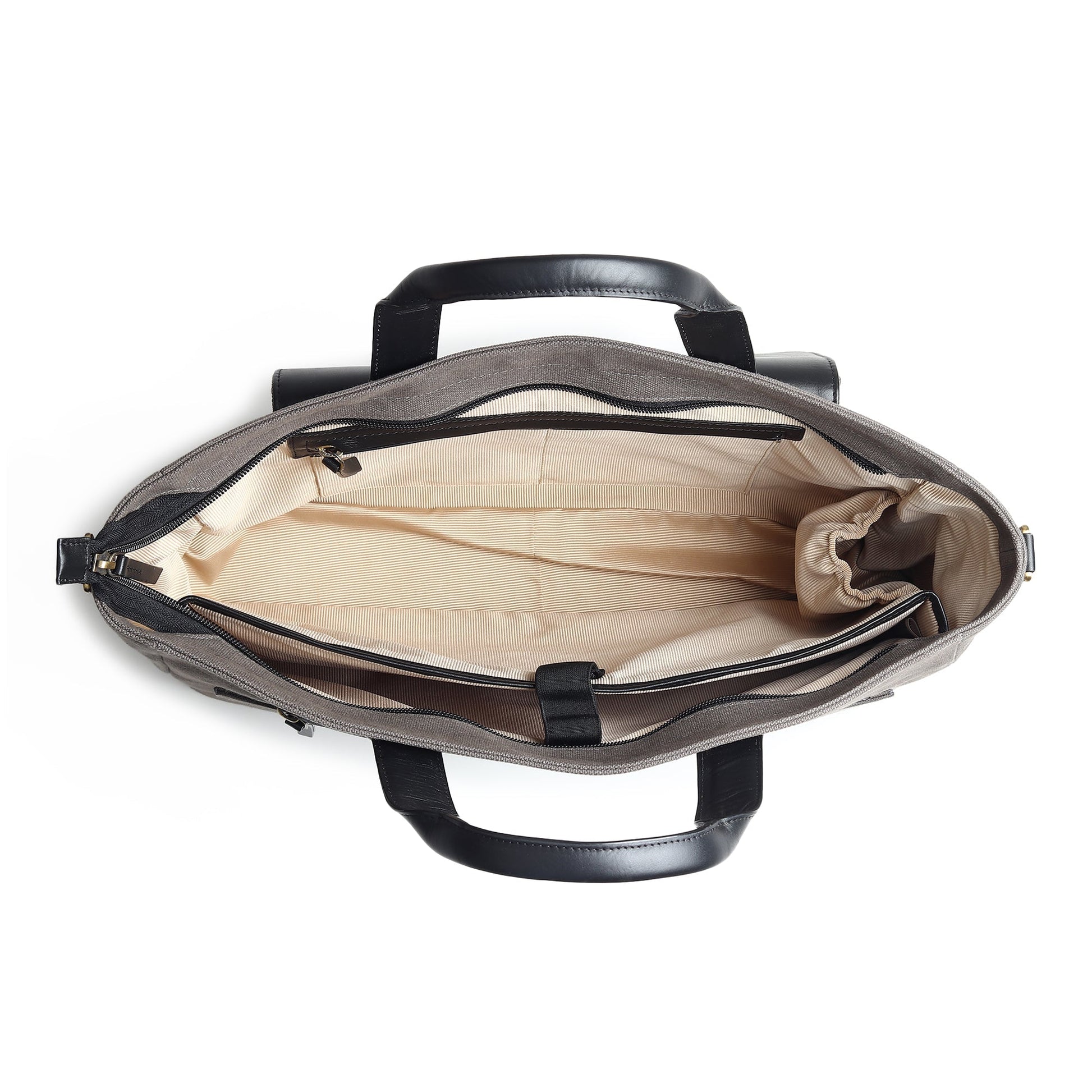 Crafted for the professional who values durability and timeless style, the Voyager Canvas Leather Briefcase blends heavy-duty canvas with rich, full-grain black leather accents to create a briefcase that’s as functional as it is sophisticated. Designed to withstand daily commutes and cross-continental journeys alike, this hybrid carryall merges heritage craftsmanship with modern utility—perfect for the office, travel, or weekend adventures.