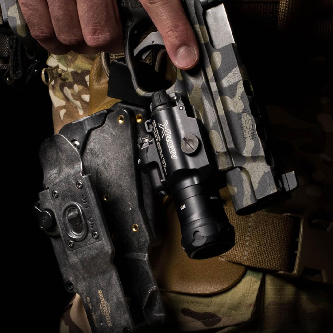 Become The Fear Of The Unknown. Keep your whereabouts in the dark with the X400VH, which integrates with SureFire’s revolutionary MasterFire® Rapid Deploy Holster for quick deployment and instant-on light activation, an ideal combination in a low-light, high-stress situation.