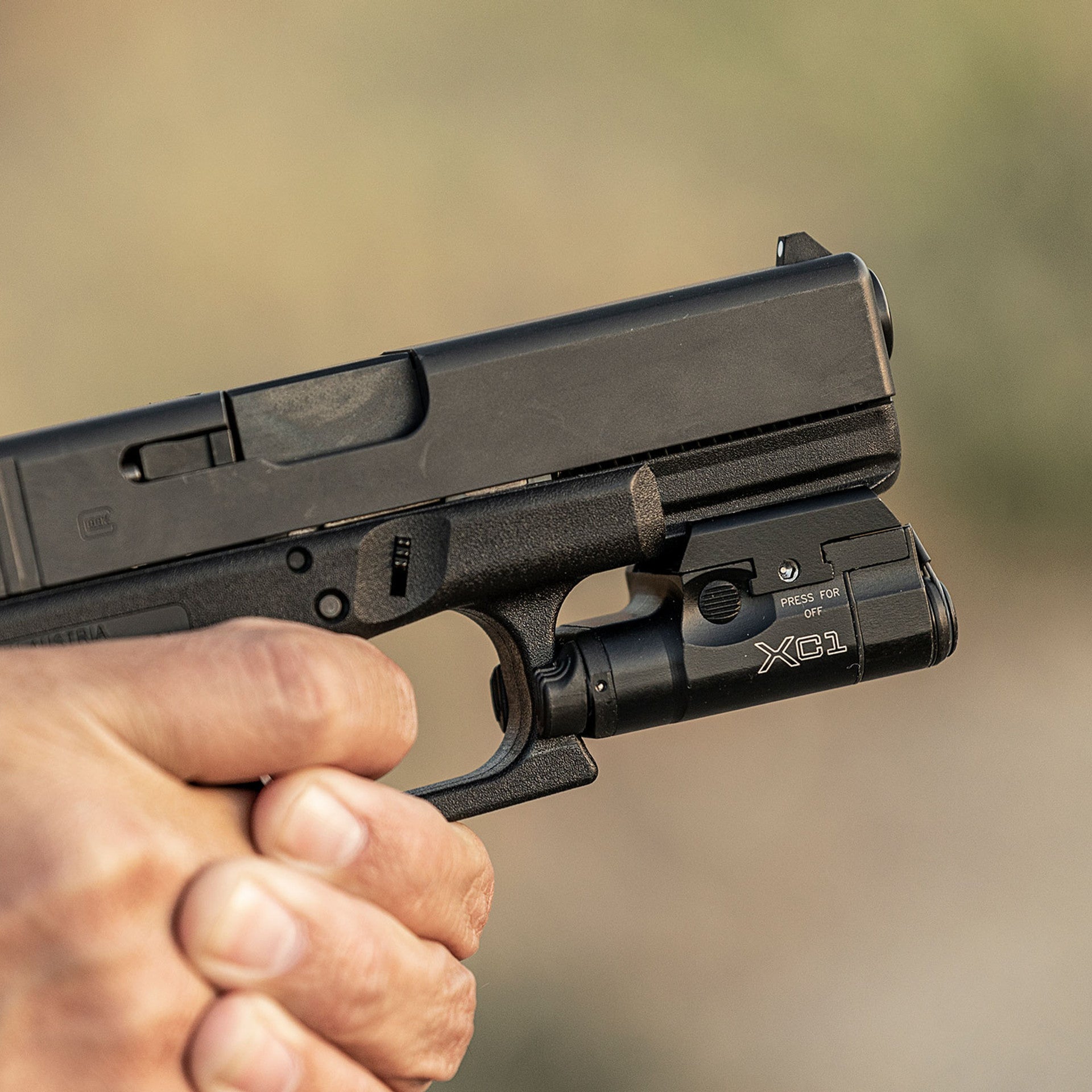 Keep It Simple. Lightweight and compact, the SureFire XC1-C securely mounts to railed handguns without hampering concealability and delivers 300 lumens of white light from a single AAA battery. Our proprietary, precision-engineered smooth parabolic reflector projects a beam with a focused hot spot for mid-to-long-range illumination along with a corona of diffused light optimized for situational awareness in the near field.